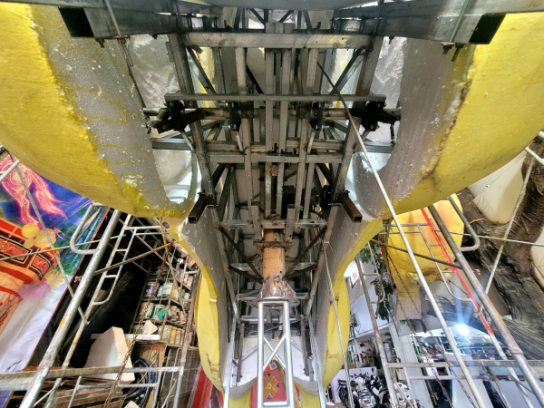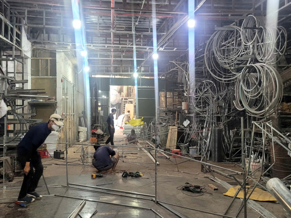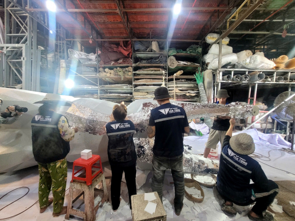 Để đáp ứng khối lượng công việc lớn, nghệ nhân Đinh Văn Tòng cho hay đơn vị thi công đã huy động từ 30 công nhân trực tiếp tại xưởng, cùng hơn 20 nhân sự phụ trách các khâu kỹ thuật, chi tiết và vận hành bên ngoài.