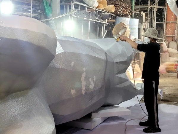 Các công đoạn phủ bạc, sơn vẽ... cho linh vật.
