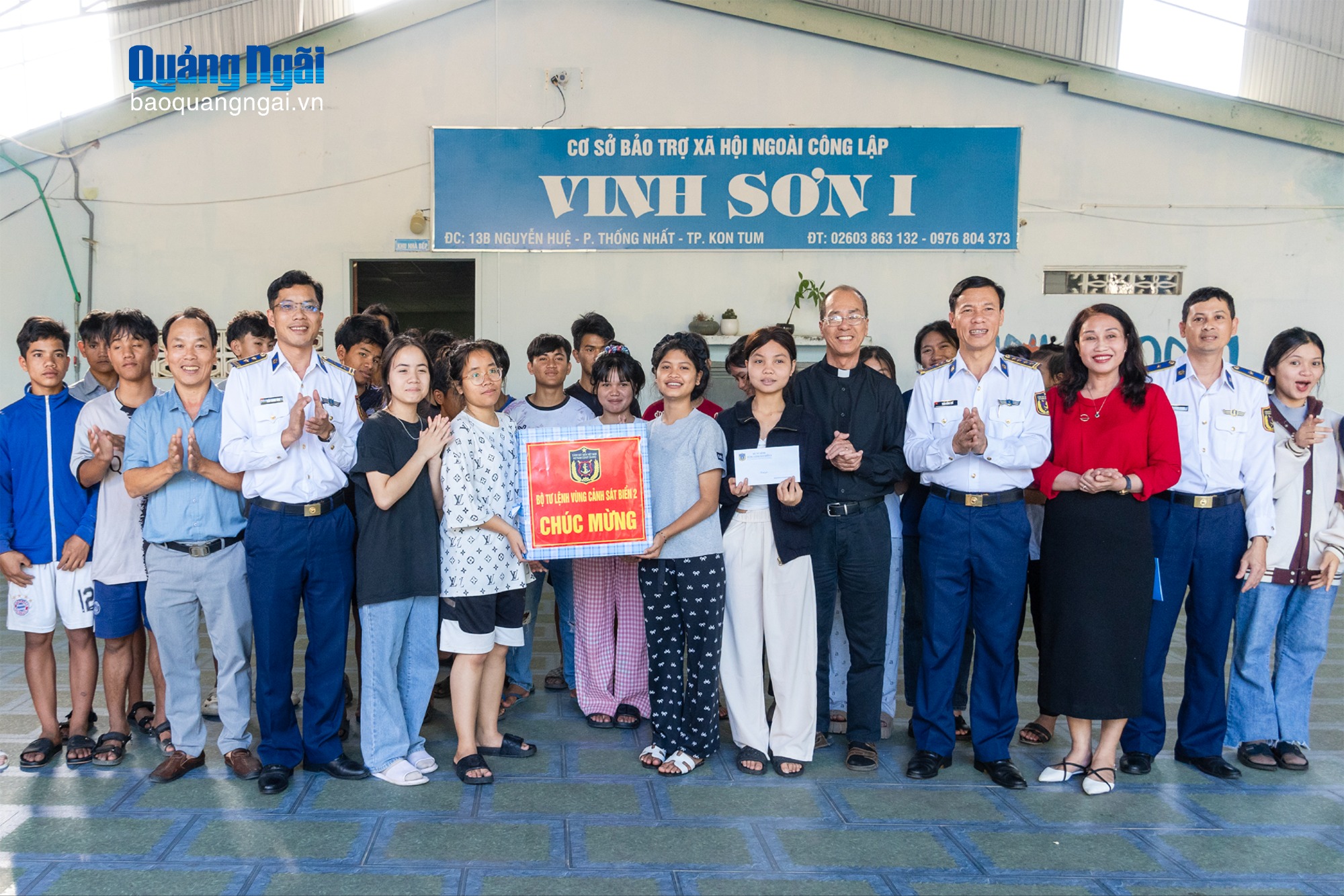 Đoàn tặng quà cho các cháu mồ côi tại Cơ sở bảo trợ xã hội Vinh Sơn 1.