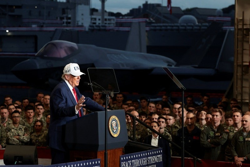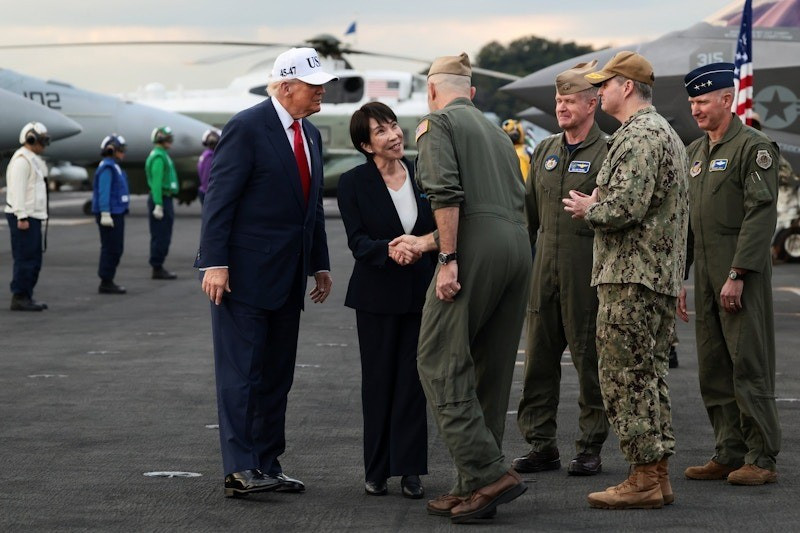 Chuyến thăm của ông Trump là một phần trong chương trình phô trương lực lượng của cả hai nước theo chính sách “hòa bình thông qua sức mạnh”. Hiện có 55.000 quân nhân Mỹ đang đồn trú tại Nhật Bản.
