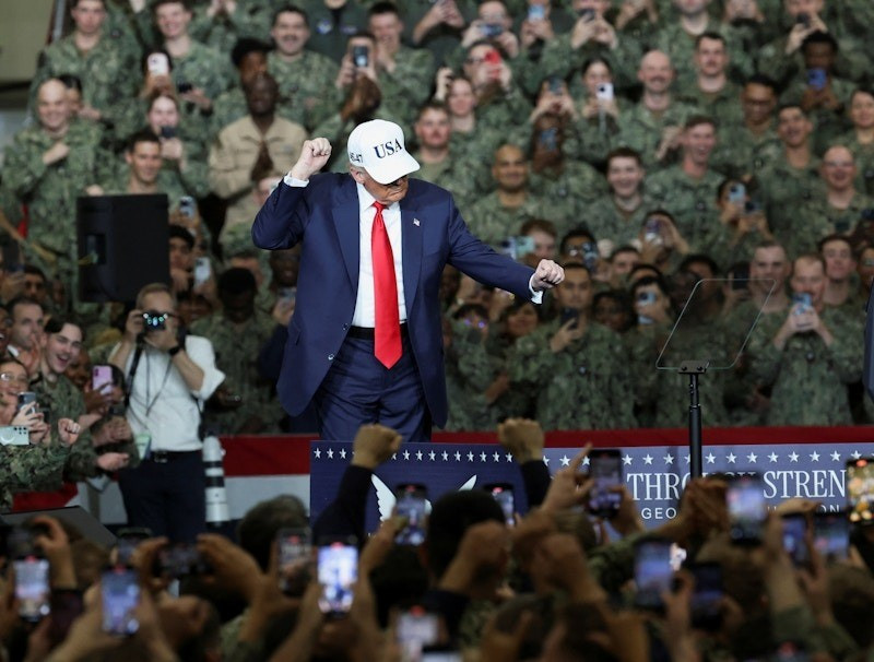 Ông Trump cũng cho biết, bà Takaichi đã nói với ông trong cuộc họp trước đó rằng hãng sản xuất xe hơi Toyota của Nhật Bản sẽ tăng cường đầu tư vào Mỹ. "Tôi vừa được thủ tướng thông báo rằng Toyota sẽ đặt các nhà máy xe hơi trên khắp nước Mỹ với tổng vốn đầu tư hơn 10 tỷ đô la. Hãy mua một chiếc Toyota", ông Trump thúc giục các binh sĩ.