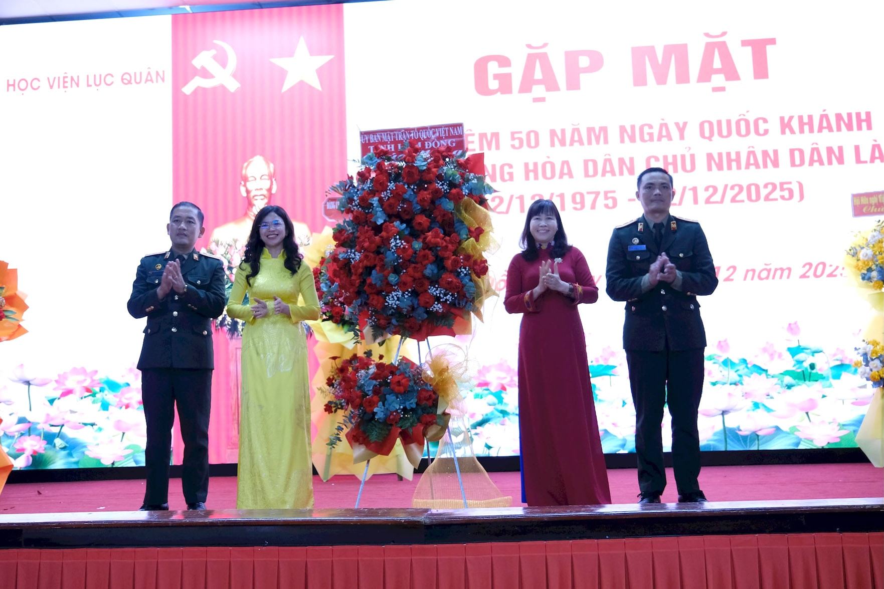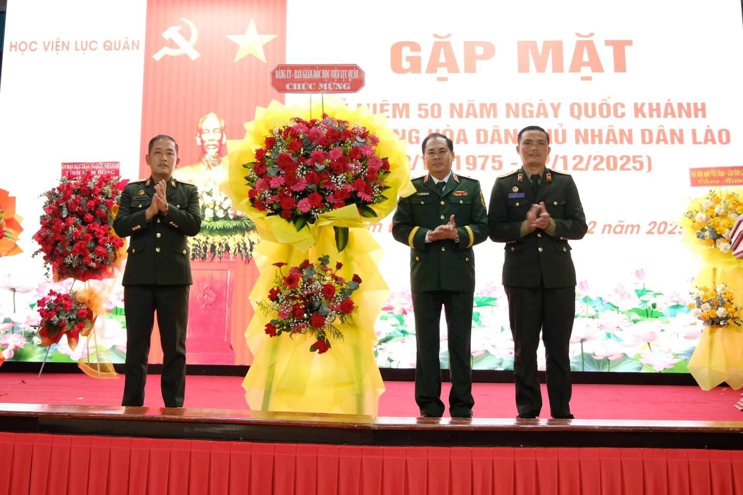Tham dự buổi gặp mặt có Thiếu tướng Nguyễn Thanh Phong, Phó Chính ủy Học viện Lục quân; đồng chí Hà Thị Hạnh, Ủy viên Ban Thường vụ Tỉnh ủy, Phó Chủ tịch Ủy ban MTTQ Việt Nam tỉnh Lâm Đồng; đại diện Bộ CHQS tỉnh, Hội Cựu chiến binh tỉnh, Hội Hữu nghị Việt Nam - Lào tỉnh Lâm Đồng, Hội Hữu nghị tỉnh Lâm Đồng cùng lãnh đạo các khoa, hệ, phòng của Học viện.