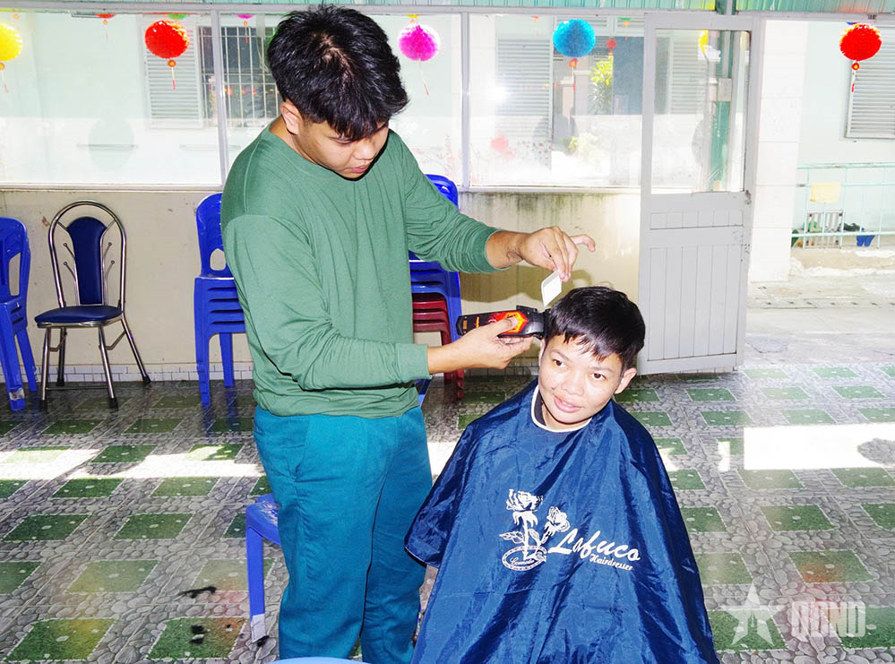 Cùng với đó, cán bộ, chiến sĩ Ban CHQS phường Chánh Phú Hòa tổ chức cắt tóc miễn phí góp phần mang đến niềm vui, diện mạo mới để các đối tượng đang được bảo trợ vui xuân, đón Tết Nguyên đán Bính Ngọ đầm ấm, an vui.