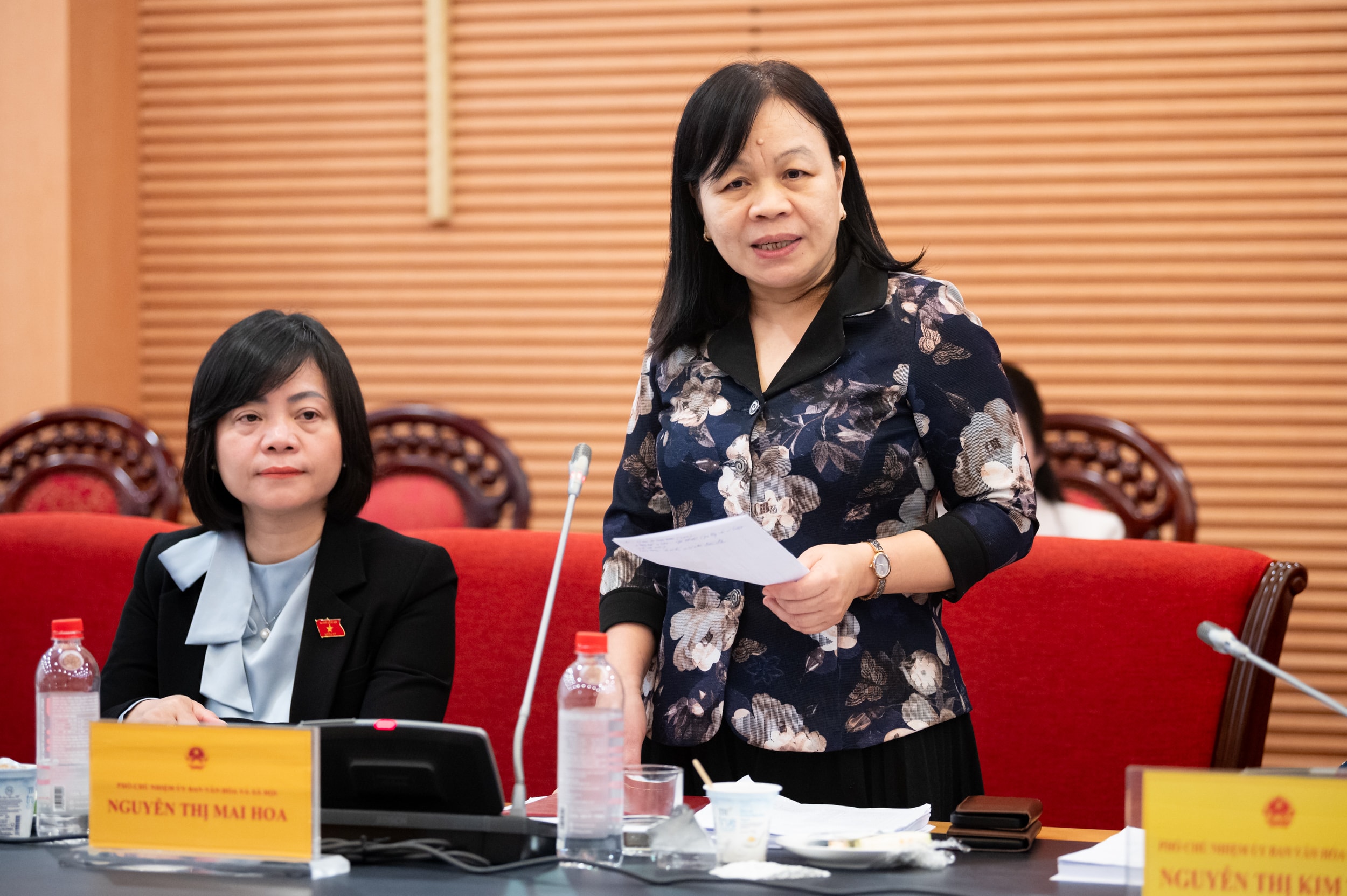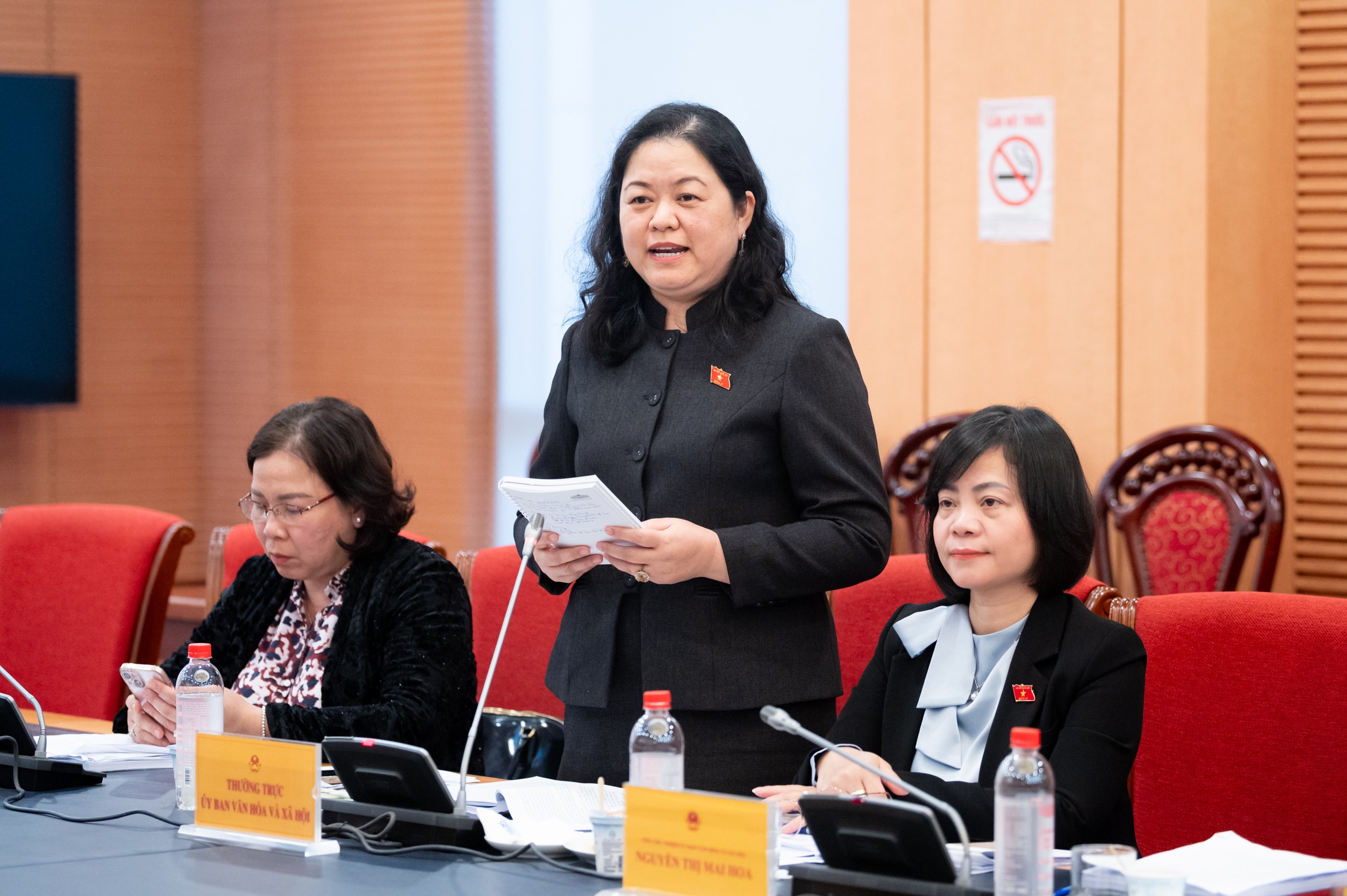 Phó Chủ nhiệm Ủy ban Văn hóa và Xã hội Nguyễn Thị Mai Hoa phát biểu