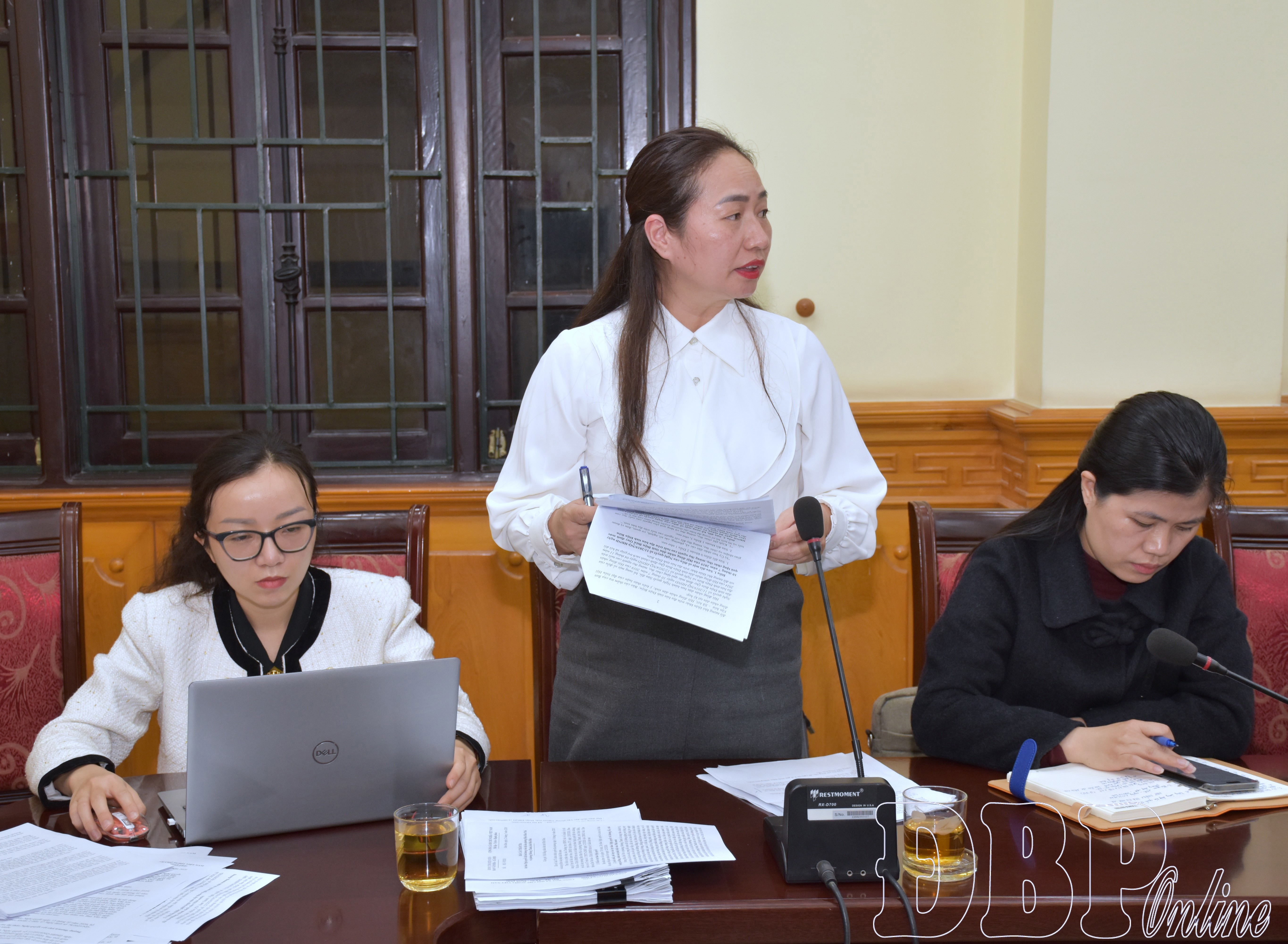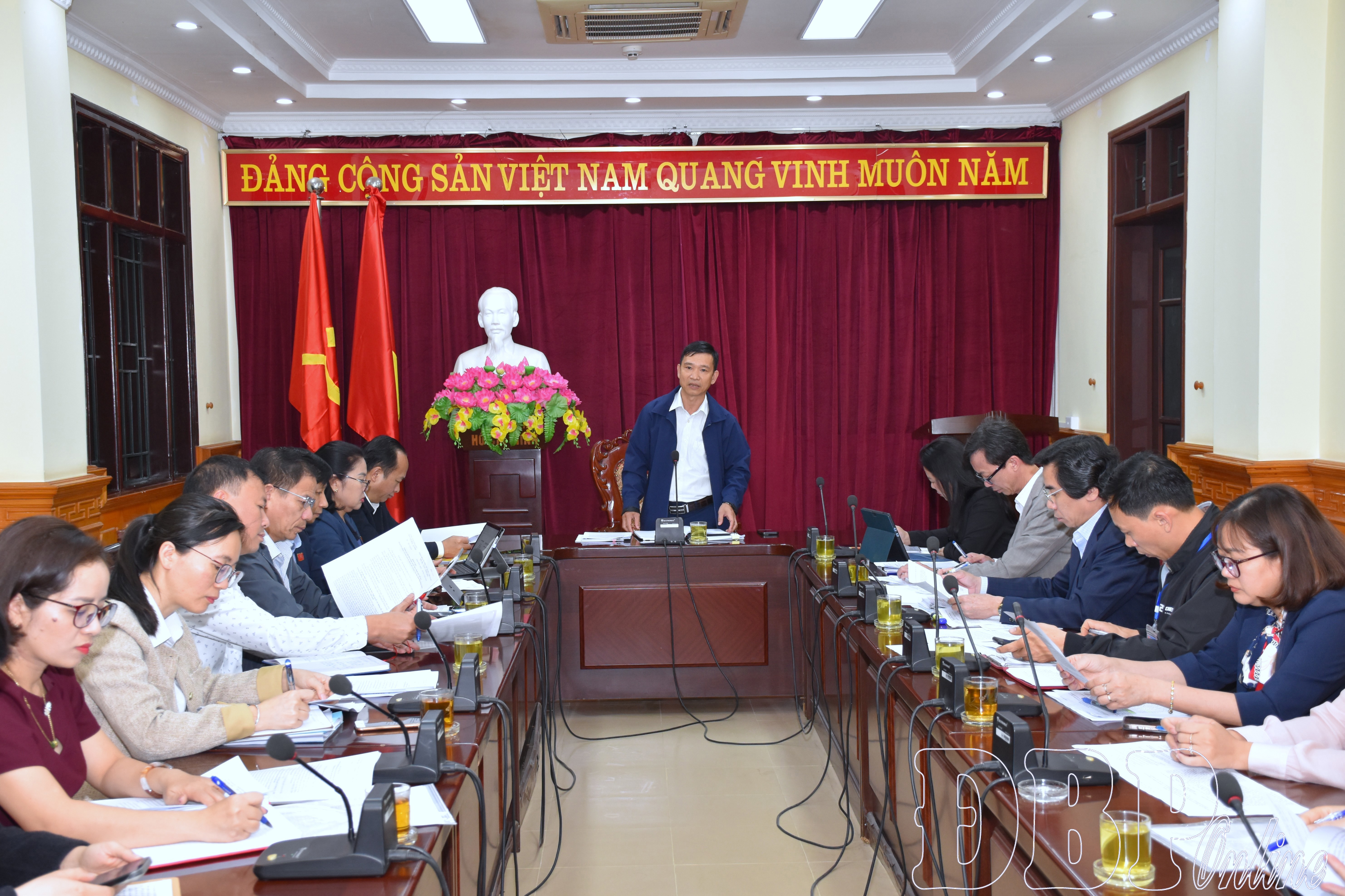 Lãnh đạo Ban Văn hóa - Xã hội, HĐND tỉnh phát biểu tại cuộc họp.