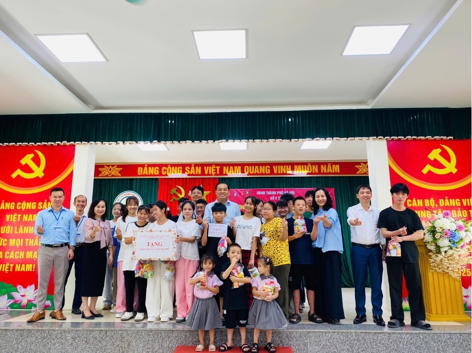 Đại diện Sở Y tế Hà Nội thăm, tặng quà Trung tâm phục hồi chức năng Việt - Hàn. Ảnh: SYT