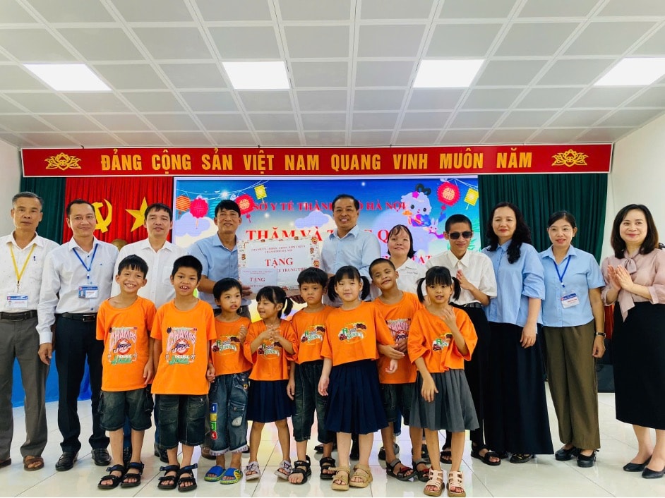 Đại diện Sở Y tế Hà Nội thăm, tặng quà Trung tâm nuôi dưỡng trẻ khuyết tật. Ảnh: SYT