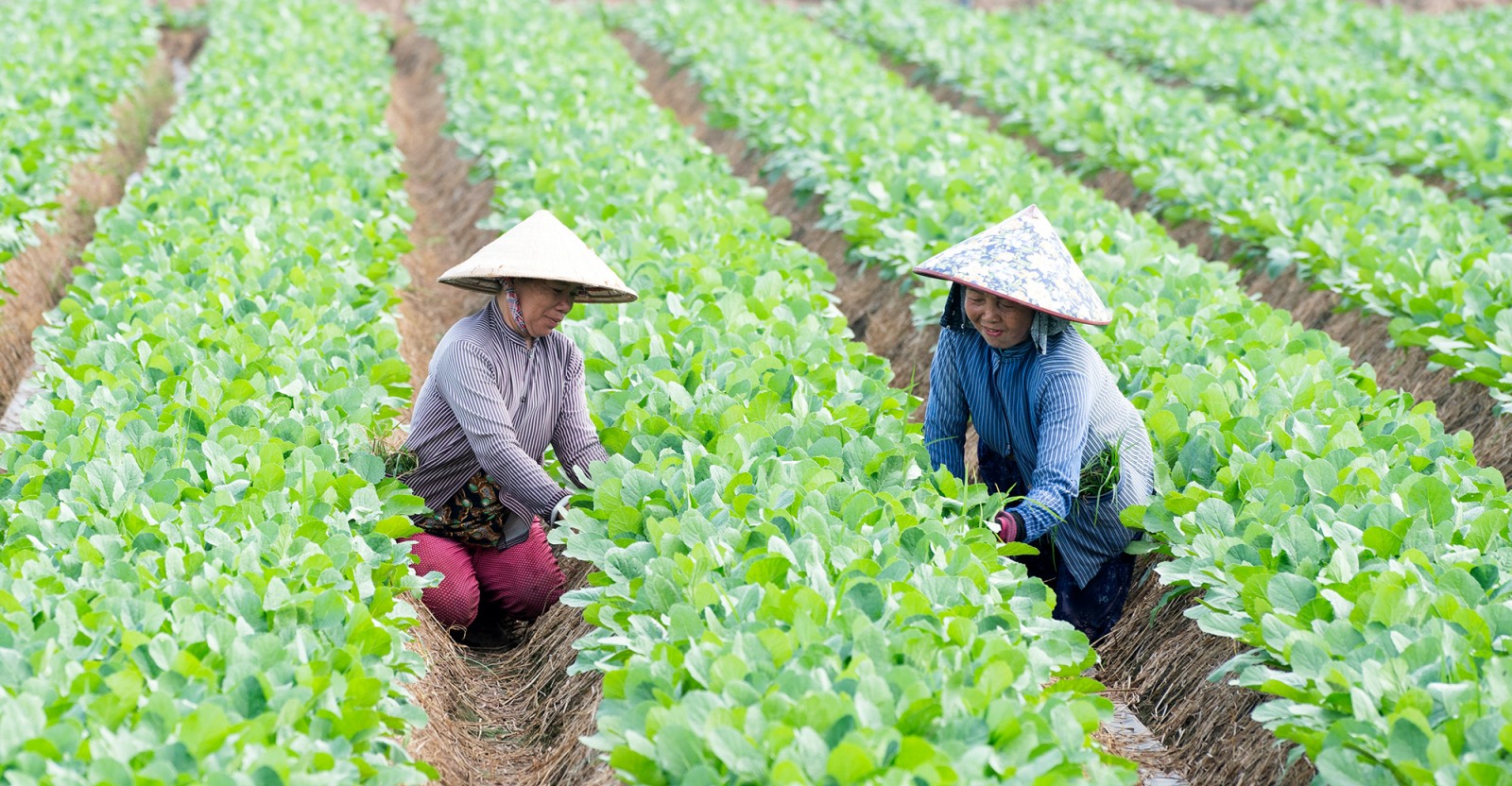 Nông dân chăm sóc rau màu.