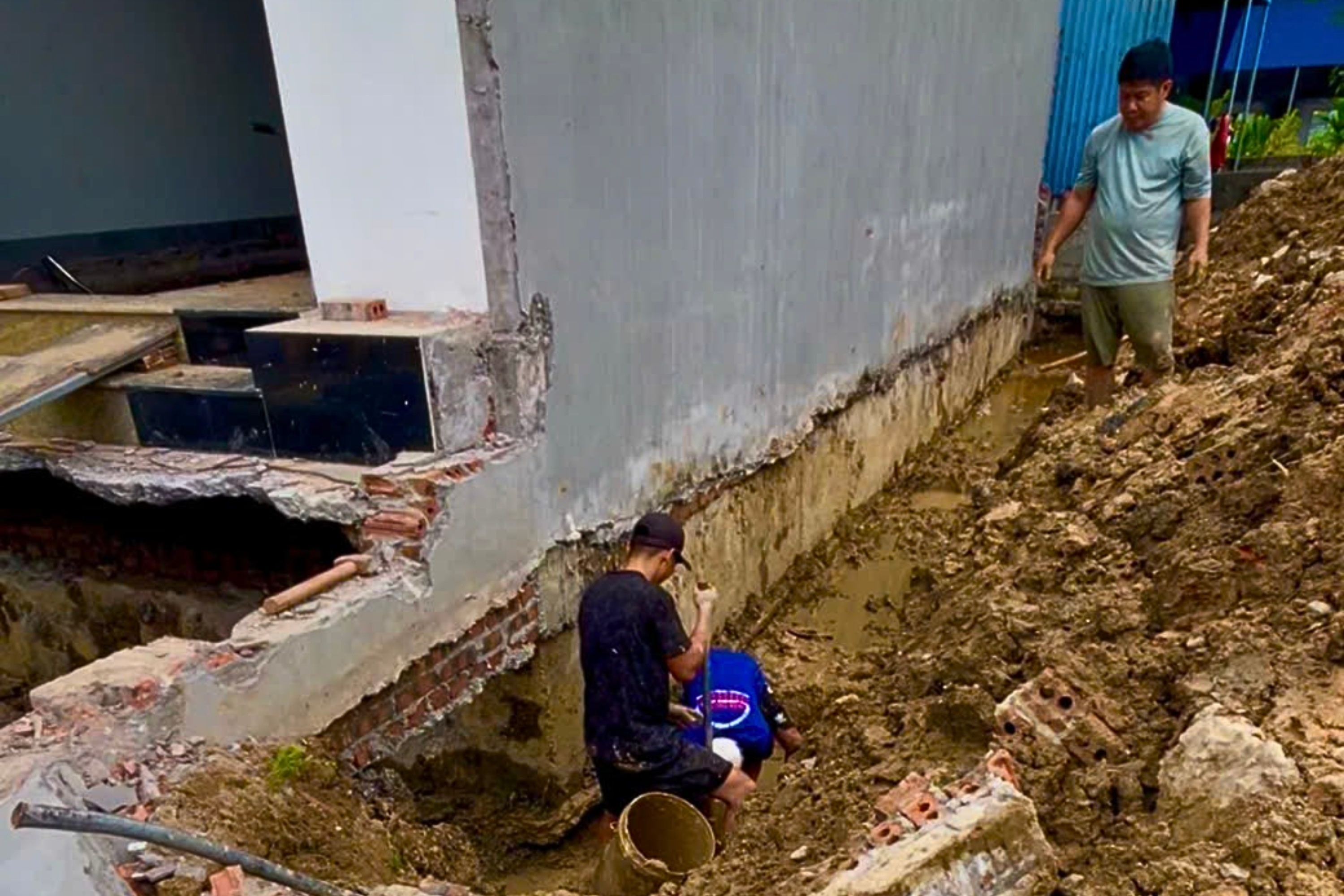 “Dầm móng của ngôi nhà nằm khá sâu nên việc đào móng mất nhiều thời gian hơn dự kiến”, ông Hoàng Đình Bách (giám đốc công ty) chia sẻ với Tri Thức - Znews.