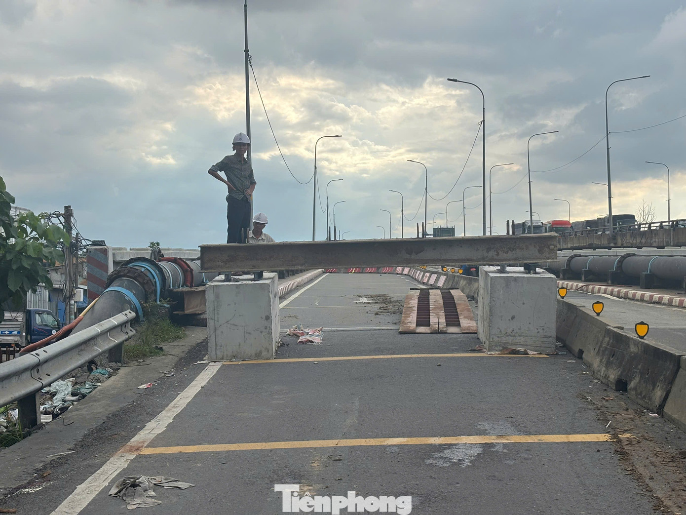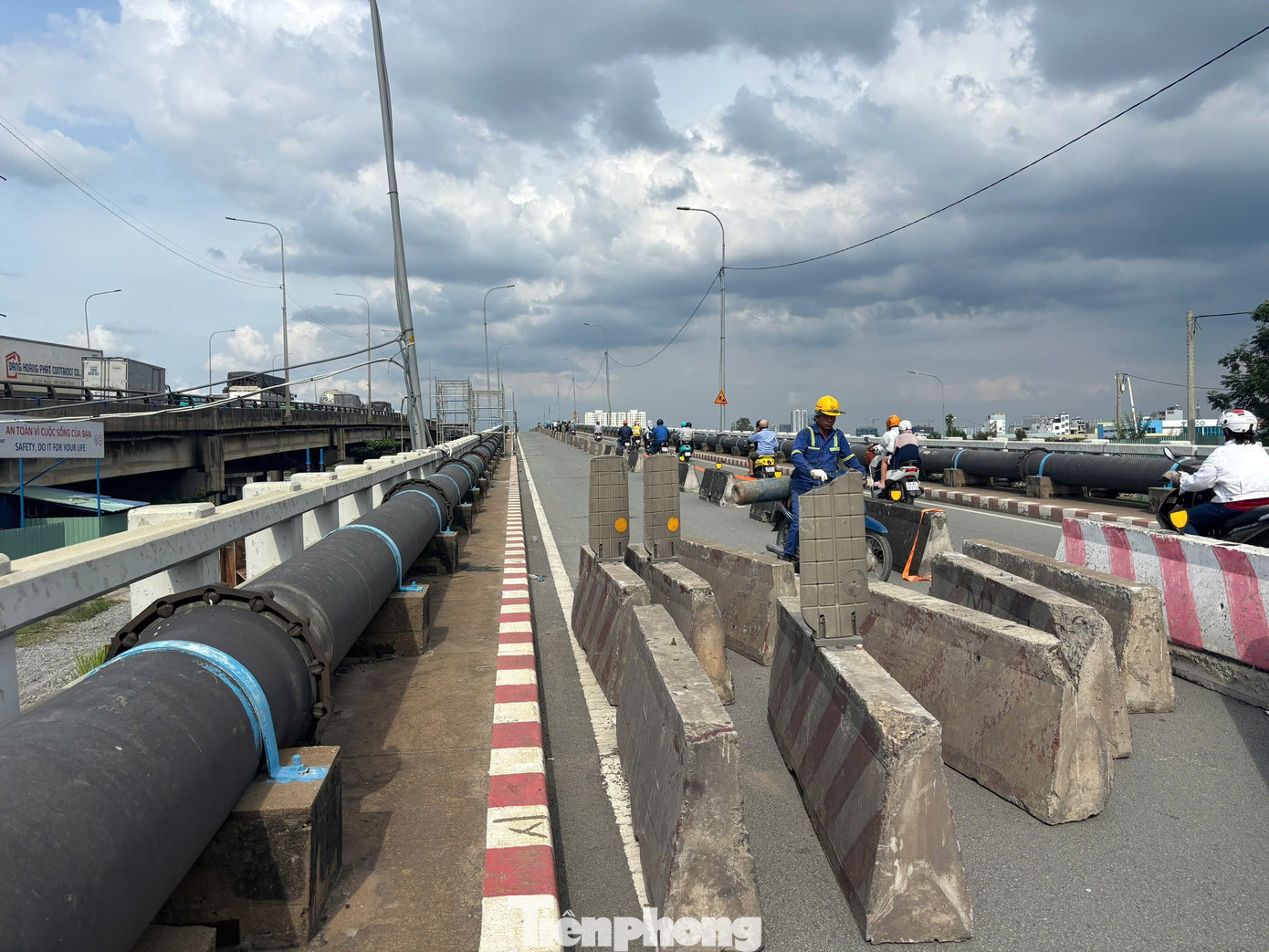 Phân luồng giao thông trên cầu để phục vụ thi công.