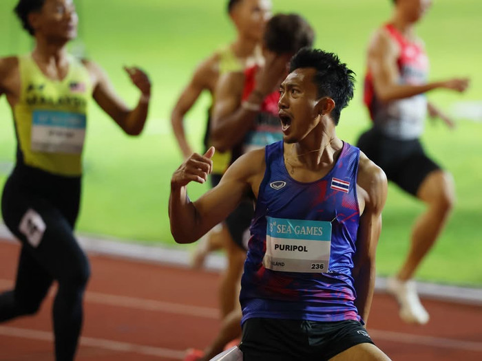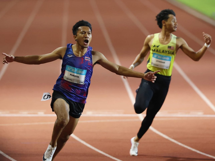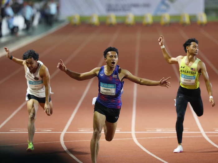Nếu màn trình diễn ở chung kết khiến khán giả phấn khích, thì những gì anh làm ở vòng loại còn gây “choáng” hơn. Puripol đạt thành tích 9,94 giây, chính thức phá sâu kỷ lục SEA Games tồn tại 16 năm. Kỷ lục cũ 10,17 giây của huyền thoại Indonesia Suryo Agung Wibowo giờ đây đã bị xô đổ một cách ngoạn mục. Trong mắt người hâm mộ, chạy dưới 10 giây không chỉ là thành tích của một VĐV xuất sắc trong khu vực, mà còn là đẳng cấp Olympic, dấu mốc của những người nhanh nhất hành tinh.