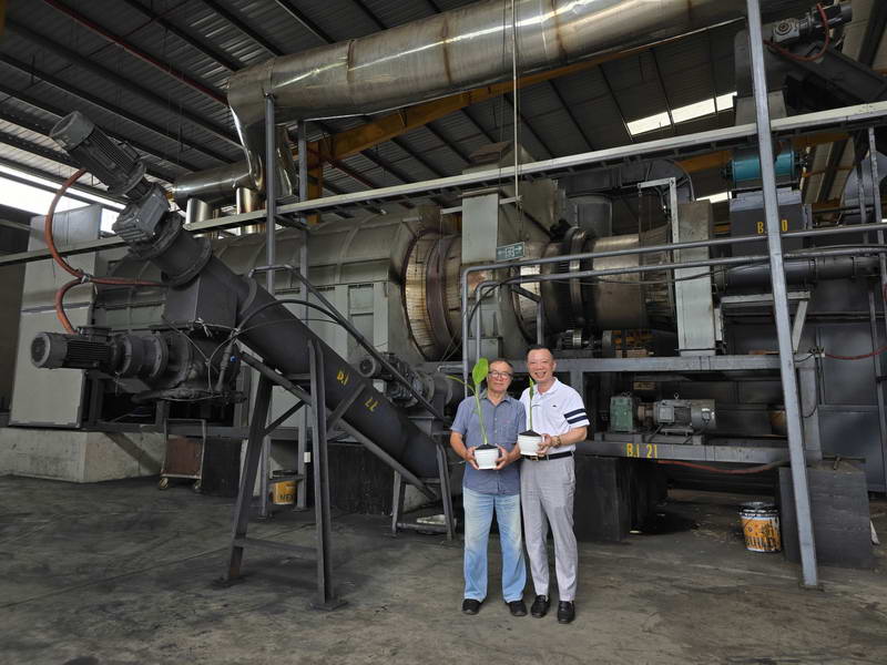 Tiến sĩ Nguyễn Đăng Nghĩa, chuyên gia về phân bón hàng đầu Việt Nam (bên trái ảnh) cùng lãnh đạo nhà máy tại xưởng sản xuất biochar.