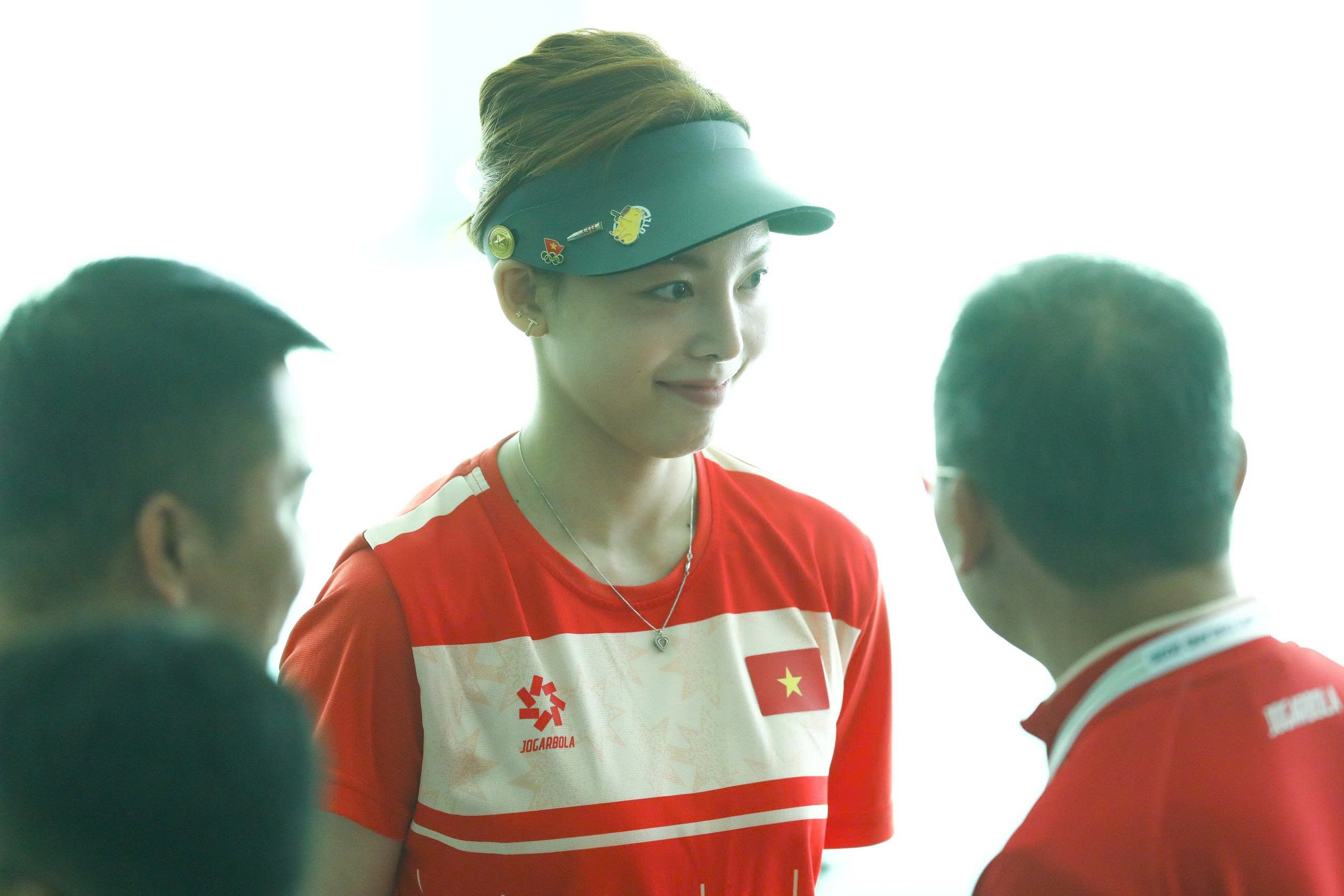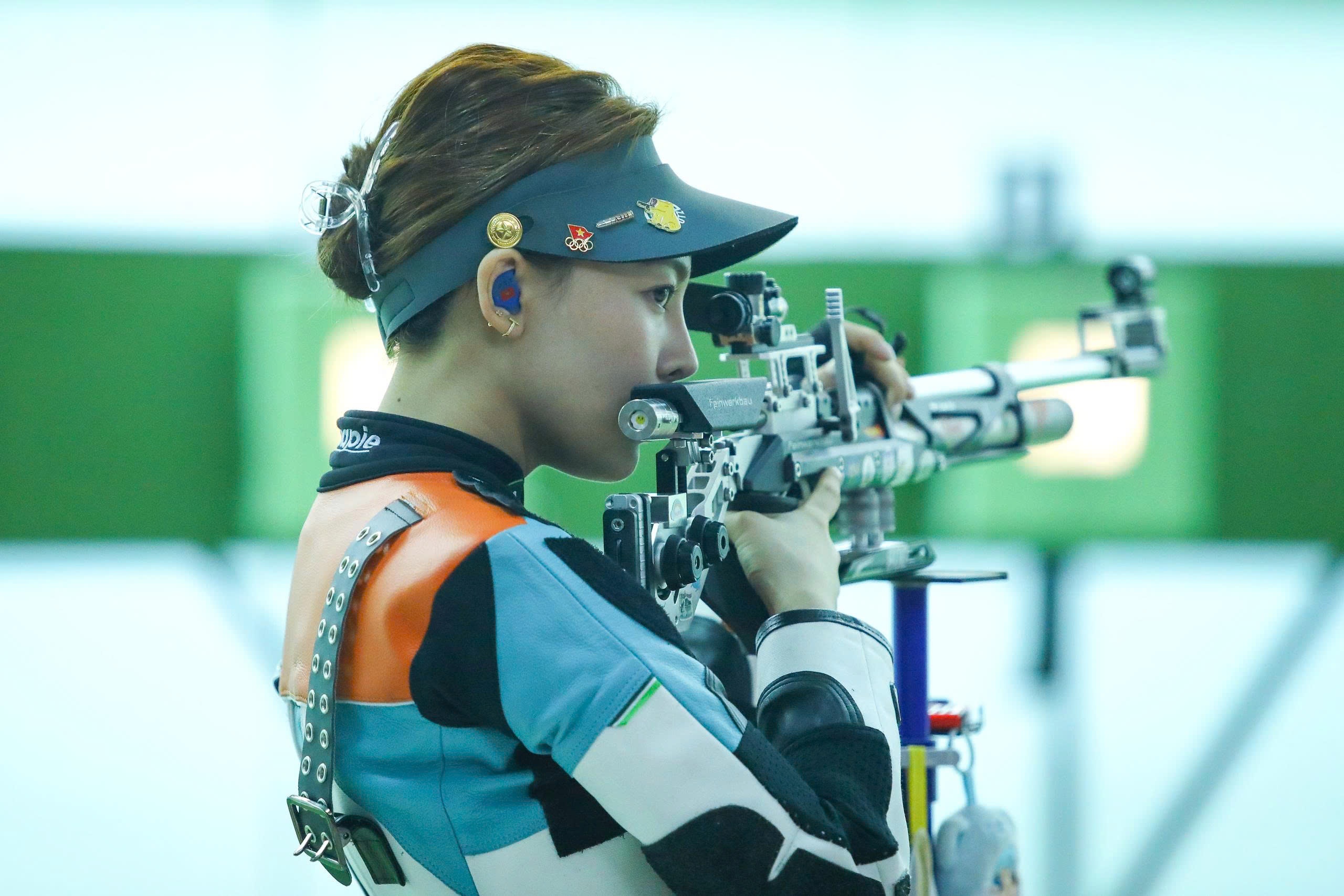 Thanh Thảo cho biết cô vẫn còn những nội dung thi đấu khác và sẽ cố gắng sẽ đạt thành tích cao nhất tại các phần thi tiếp theo. Cô cũng chia sẻ về áp lực khi các VĐV cạnh tranh nhau từng chút, khiến cô phải "chắt chiu" hơn trong từng lần bắn, cảm thấy "áp lực trên từng viên một". Ảnh: Minh Chiến.