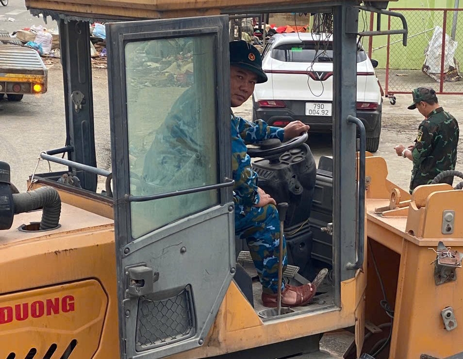 Không chỉ dựng nhà, các đơn vị quân đội còn sử dụng phương tiện cơ giới dọn bùn đất để mở đường, đưa thiết bị vào thi công. Thiếu tá Nguyễn Công Trứ, Ban Công binh, Phòng Tham mưu, Trường Sỹ quan Không quân cho biết, 5 ngày qua, đơn vị đã dọn được 5km dày đặc bùn đất: “Đã gom được bùn đất, lấy lối cho bà con đi tạm thời, sau đó, quay lại gom lên xe vận chuyển đi đổ. Bùn đất đặc quánh 50-60cm, còn lẫn rác thì sao mà bà con đi được” - Thiếu tá Nguyễn Công Trứ nói.