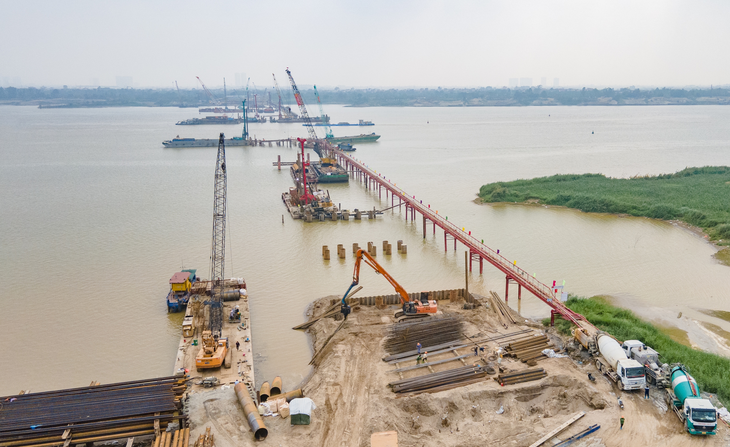 Các cầu vượt sông Hồng đang được bứt tốc đẩy nhanh tiến độ chạy đua trước lũ để kịp về đích.