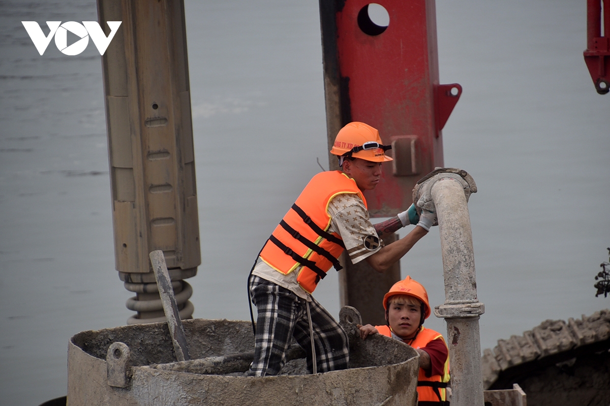 "Tập thể công ty từ ban lãnh đạo đến anh em công nhân đều rất quyết tâm hoàn thành xong hạng mục cọc khoan nhồi và bệ trước mùa lũ, vì khi nước dâng cao sẽ rất khó thi công", anh Quyết nói.