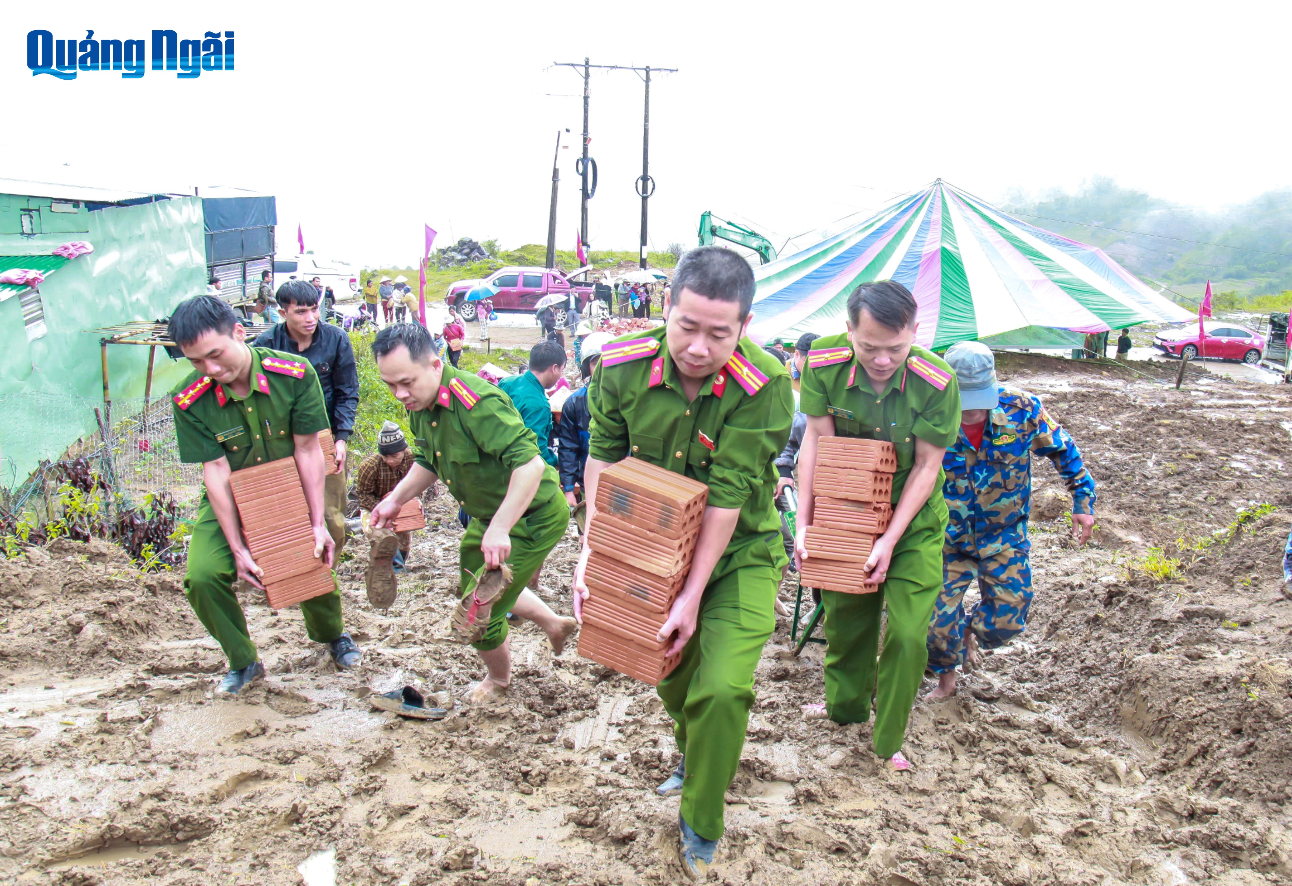 Sau lễ phát động, không khí làm việc diễn ra khẩn trương, ấm tình quân dân. Hàng trăm cán bộ công an, dân quân, lãnh đạo thôn và cán bộ xã đồng loạt xuống địa bàn hỗ trợ người dân sửa chữa, tháo dỡ nhà cửa, vận chuyển đồ đạc và di dời đến nơi ở mới. Máy móc cơ giới được huy động san gạt mặt bằng, tập kết vật liệu và khởi công những căn nhà đầu tiên.