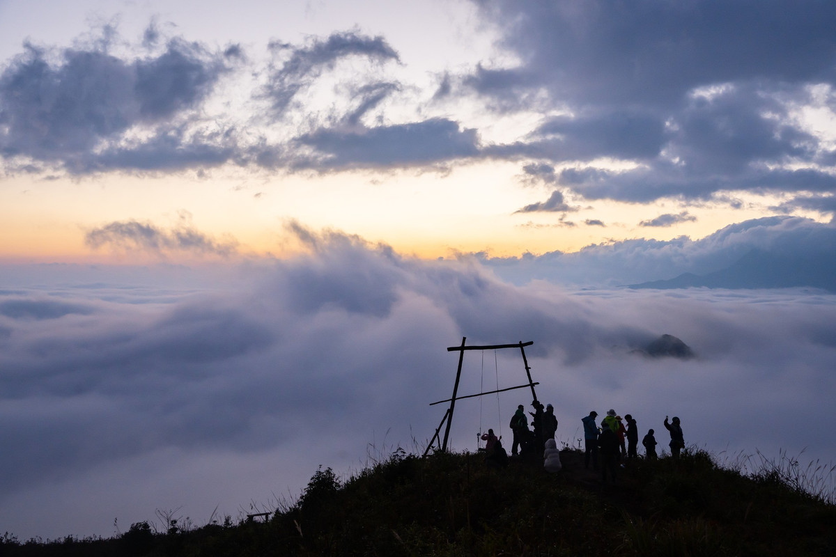Không chỉ đến check-in các cột mốc biên giới cùng những cung đường uốn lượn giữa các đồi cỏ lau, ngày đẹp trời du khách có thể chiêm ngưỡng cả biển mây lúc bình minh hoặc hoàng hôn nơi biên giới. Ảnh Nguyễn Hồng Nhật
