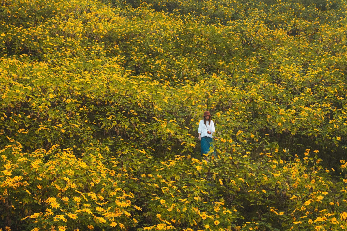 Tháng 11 cũng là thời điểm hoa dã quỳ nở rộ trên các ngọn đồi, sườn núi ở Vườn quốc gia Ba Vì, cách trung tâm Hà Nội khoảng 60 km. Hoa trồng dọc đường đi nhưng điểm tập trung nhiều hoa nhất là cốt 400 với rừng dã quỳ rộng tới 10 ha, có nhiều tuyến đi bộ cho khách tham quan. Mùa hoa dã quỳ ở đây kéo dài khoảng một tháng và đẹp nhất trong 2 tuần khi hoa rộ nở. Ảnh Nguyen Hong Nhat