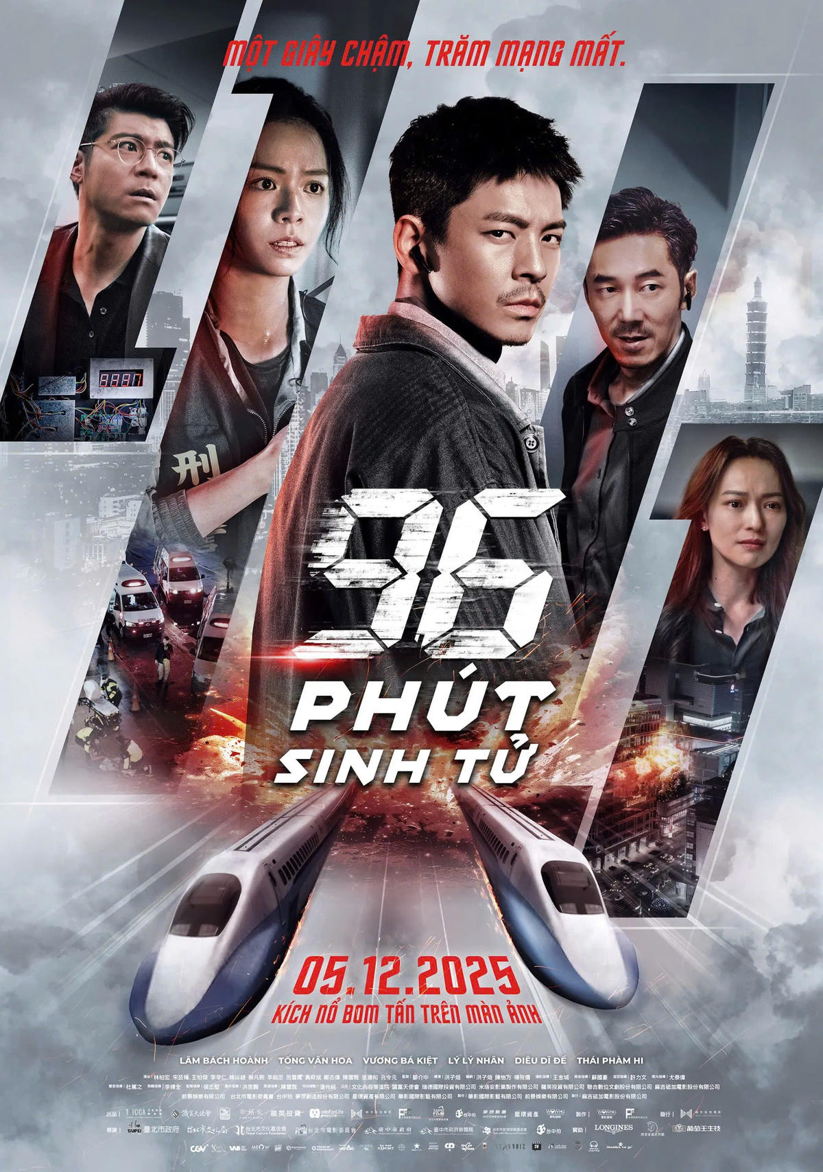 Mở màn tháng 12 là những tựa phim quốc tế và tác phẩm Việt được khán giả chờ đợi. Ngày 5/12/2025, bộ phim “96 phút sinh tử” (tựa gốc: 96 Minutes) chính thức ra mắt tại rạp, kể câu chuyện về vụ đe dọa đánh bom tinh vi trên chuyến tàu cao tốc từ Đài Bắc đến Cao Hùng. Phim theo chân cựu chuyên gia gỡ bom Tống Khang Nhân (Lâm Bách Hoành) cùng nữ cảnh sát Huỳnh Hân (Tống Vân Hoa) đối mặt với hiểm họa và những ám ảnh từ quá khứ. Được đánh giá là bộ phim hành động – thảm họa đầu tiên lấy bối cảnh đường sắt cao tốc tại Đài Loan, tác phẩm đã thu về doanh thu số 1 tại quê nhà trong năm 2025, nhận 5 đề cử tại giải Kim Mã, và giành Hiệu ứng hình ảnh xuất sắc.