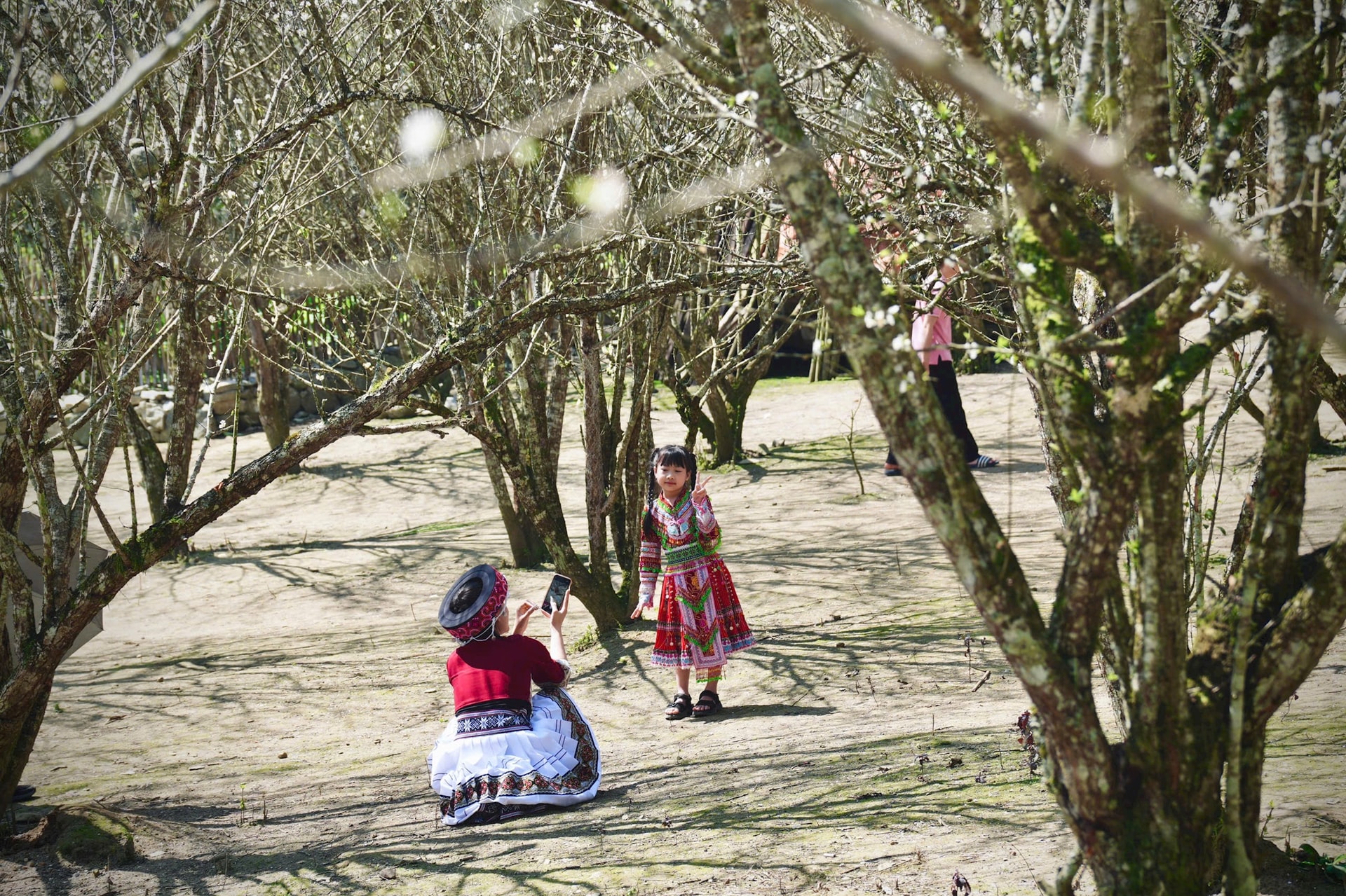 Dọc đường vào Seng Sui, những vườn mận trắng muốt tạo thành rừng hoa mà bất kỳ ai đi qua cũng phải dừng lại. Buổi sáng sớm, khi sương vẫn còn chưa tan, nơi đây trở thành một trong những cảnh quan đẹp nhất mà Bắc Hà có thể mang lại. Ảnh: Oanh Đỗ