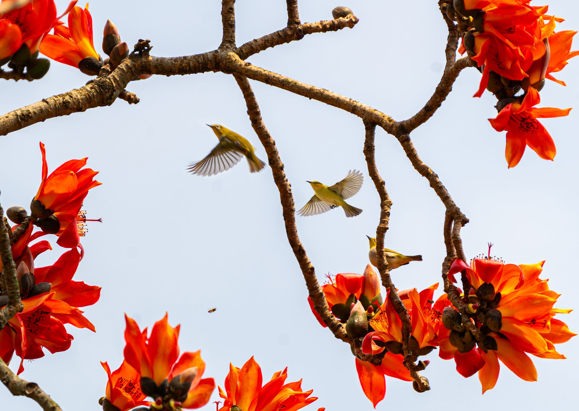 Hoa gạo nở cũng thu hút nhiều loài chim bay đến hót líu lo