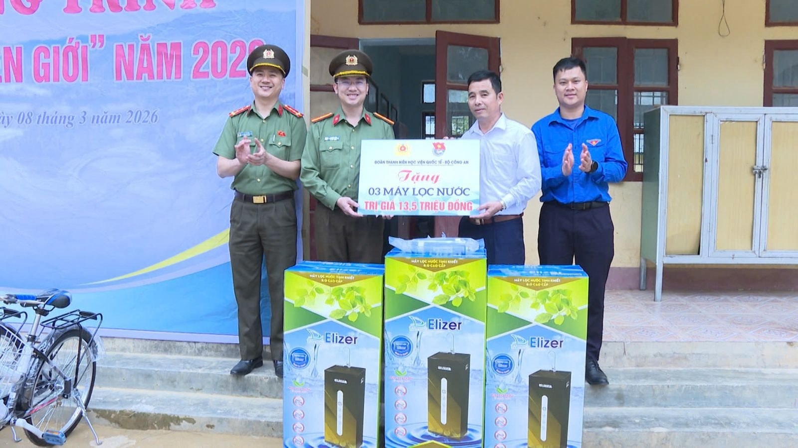 Tại Trường Tiểu học Tam Thanh (xã Tam Thanh) để đồng hành và hỗ trợ các em học sinh nghèo vượt khó trong chương trình “Nâng bước em đến trường”, Ban Thanh niên Công an tỉnh và các đơn vị đồng hành đã trao tặng 10 chiếc xe đạp, 50 suất quà cho các em học sinh có hoàn cảnh khó khăn, nỗ lực vươn lên trong học tập. Trao tặng nhà trường 3 máy lọc nước nhằm góp phần cải thiện điều kiện sinh hoạt, học tập cho thầy và trò.