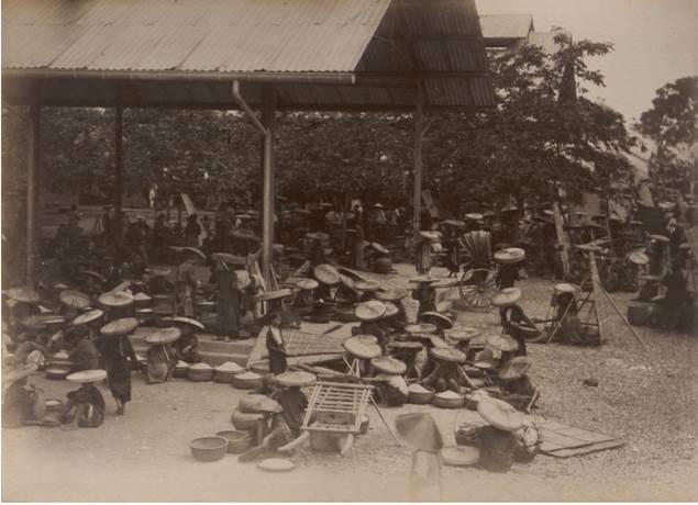 Chợ Đồng Xuân những năm 1890 với hai dãy nhà khung thép mái tôn đầu tiên. (Nguồn: Université Côte d'Azur)