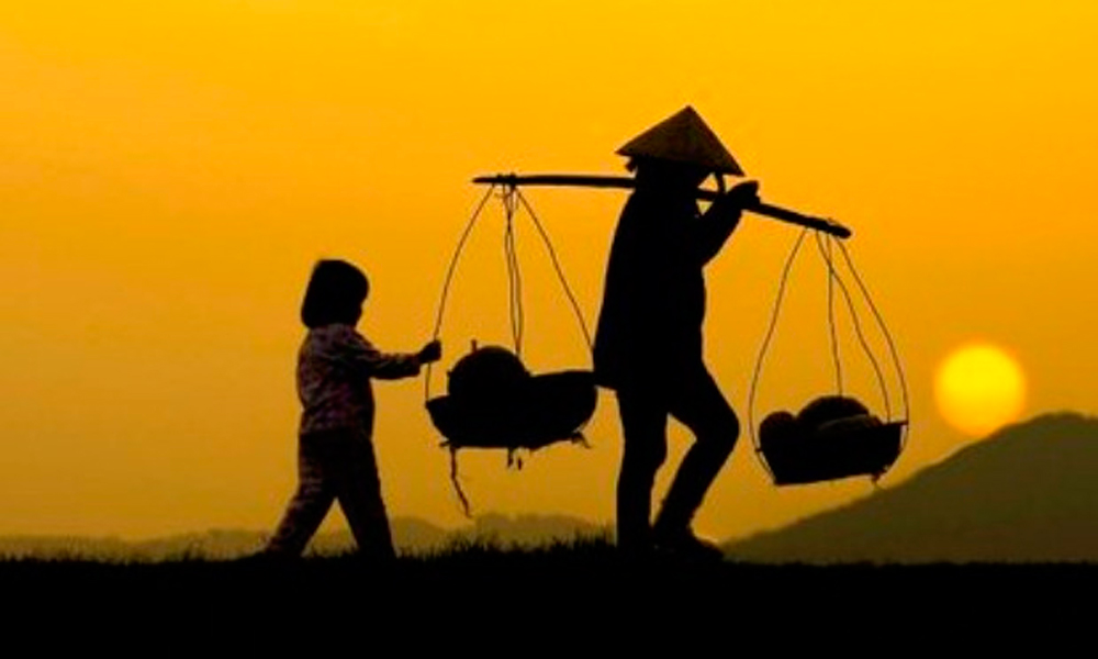 Ngõ quê ngóng mẹ chợ xa chưa về