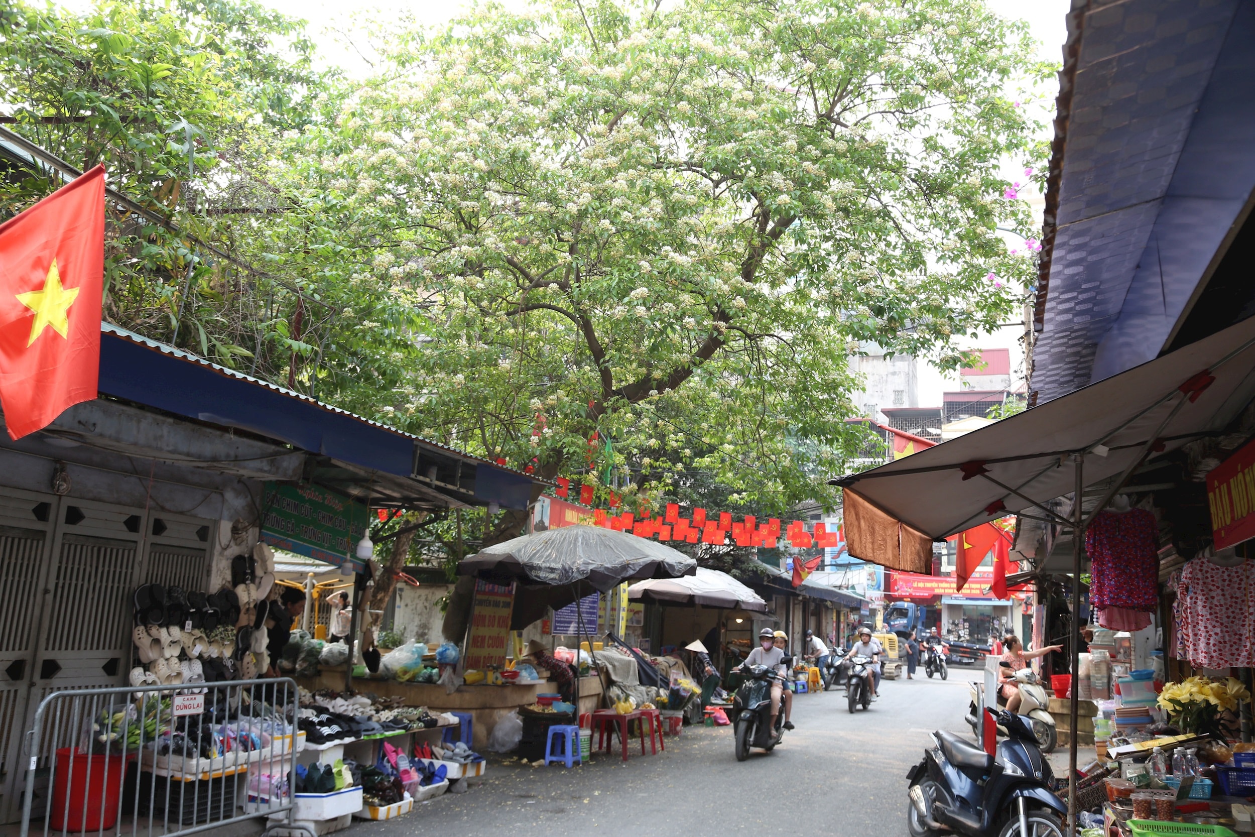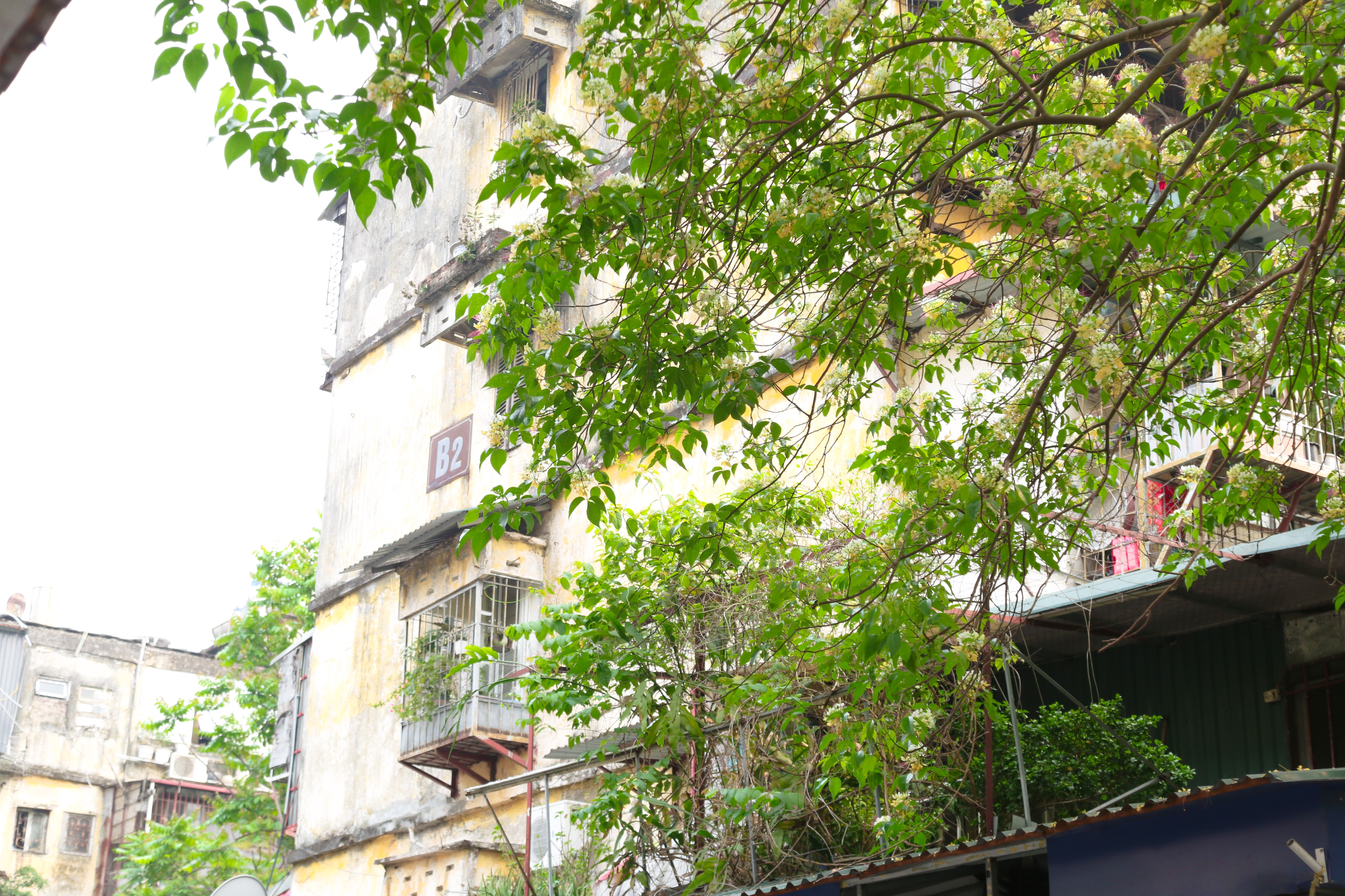 Hoa bún nở rộ, phủ sắc trắng dịu lên khu tập thể cũ, tạo nên một góc Hà Nội vừa mộc mạc, vừa nhuốm màu thời gian. Hạ sang, sắc hoa bún lại thu hút người dân tìm đến, không chỉ để ngắm nhìn mà còn để lưu giữ một phần ký ức rất riêng của Thủ đô. Ảnh: Tuyết Linh