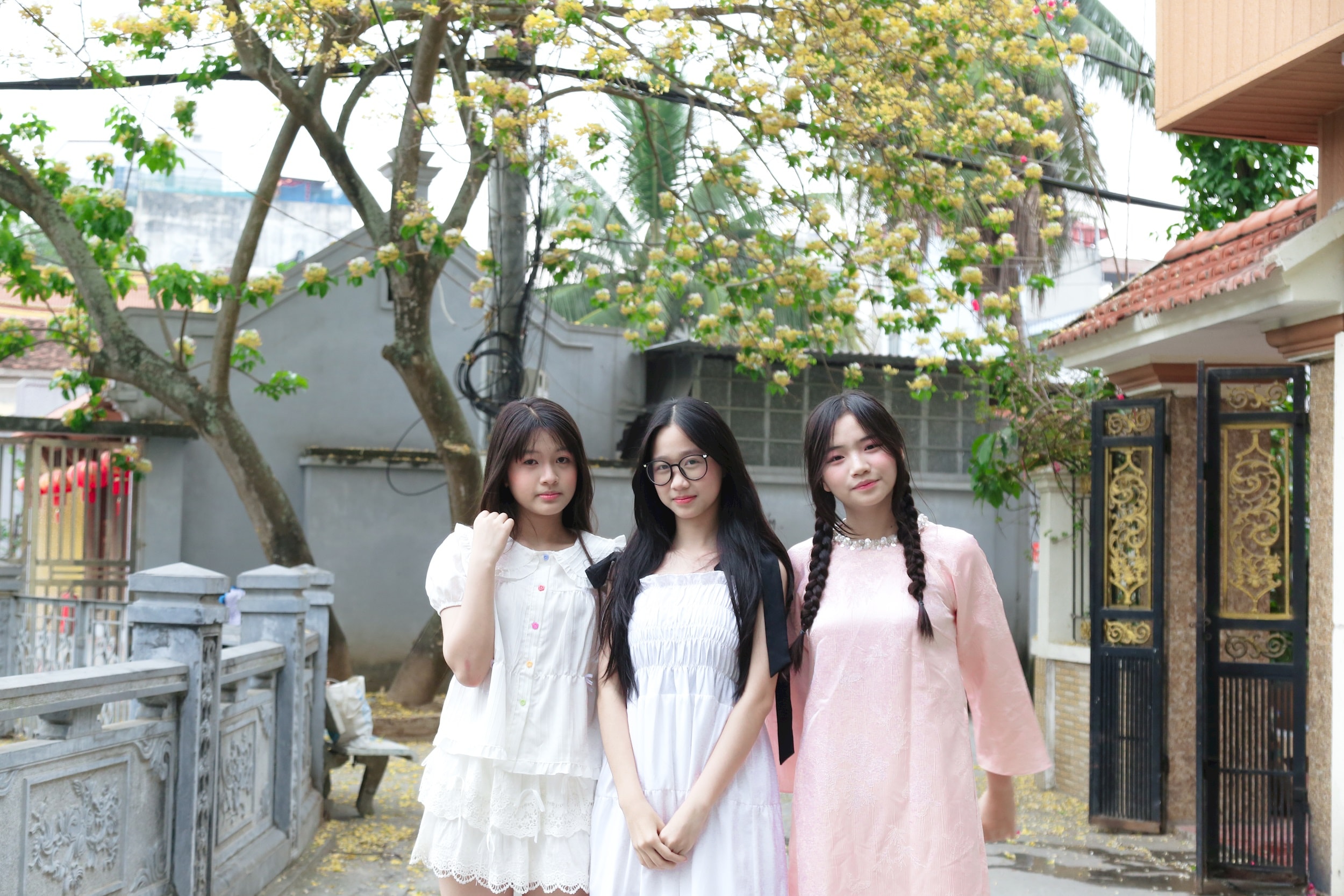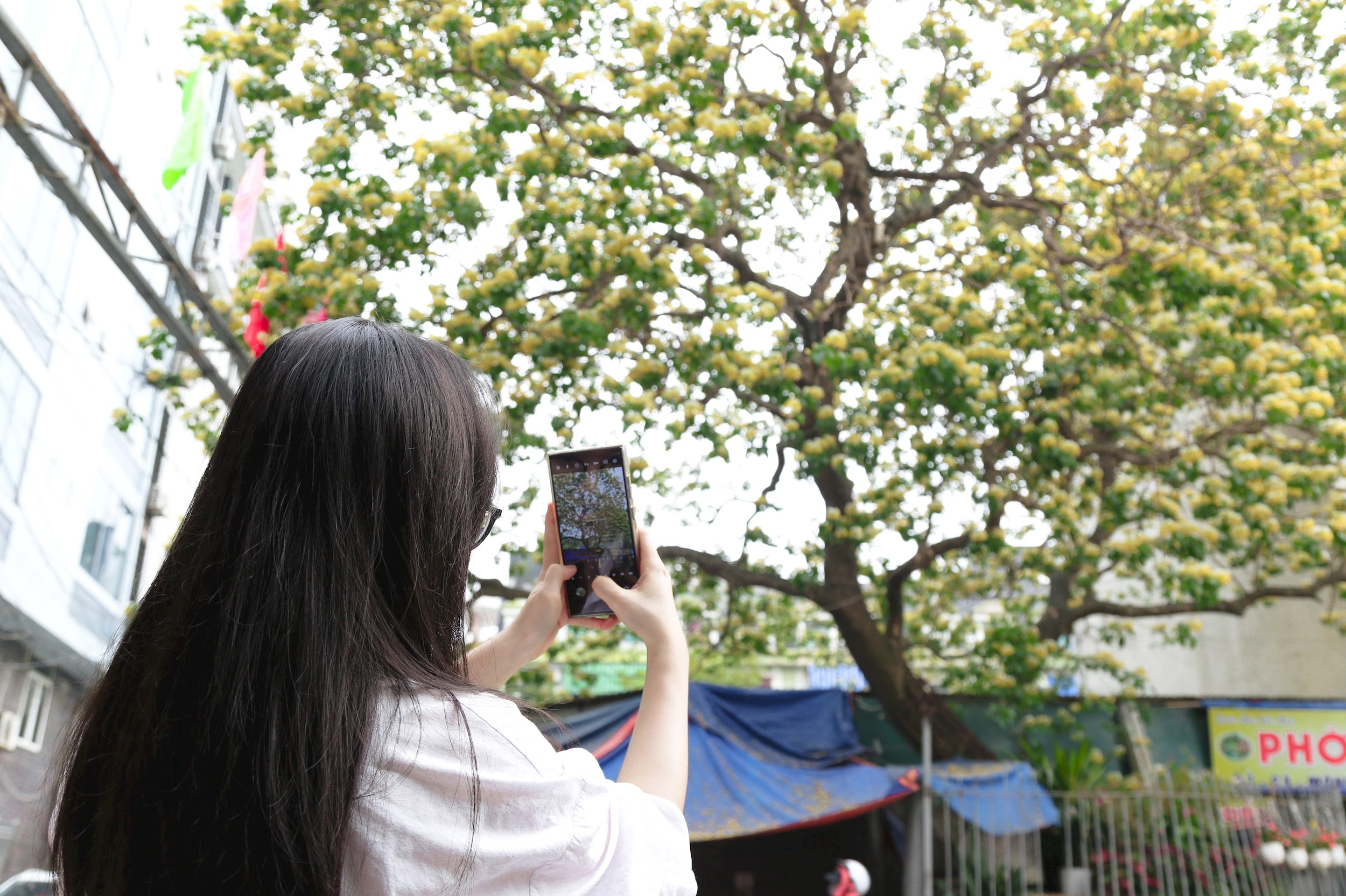 Bạn Hà Nhi (bên phải), trú tại phường Quang Trung, Hà Nội, hào hứng chia sẻ: “Nhà mình gần gốc hoa bún này, hầu như năm nào cũng được ngắm. Năm nay hoa nở sớm, bông to rực rỡ, mình cùng các bạn chụp ảnh để lưu giữ những khoảnh khắc đáng nhớ”.