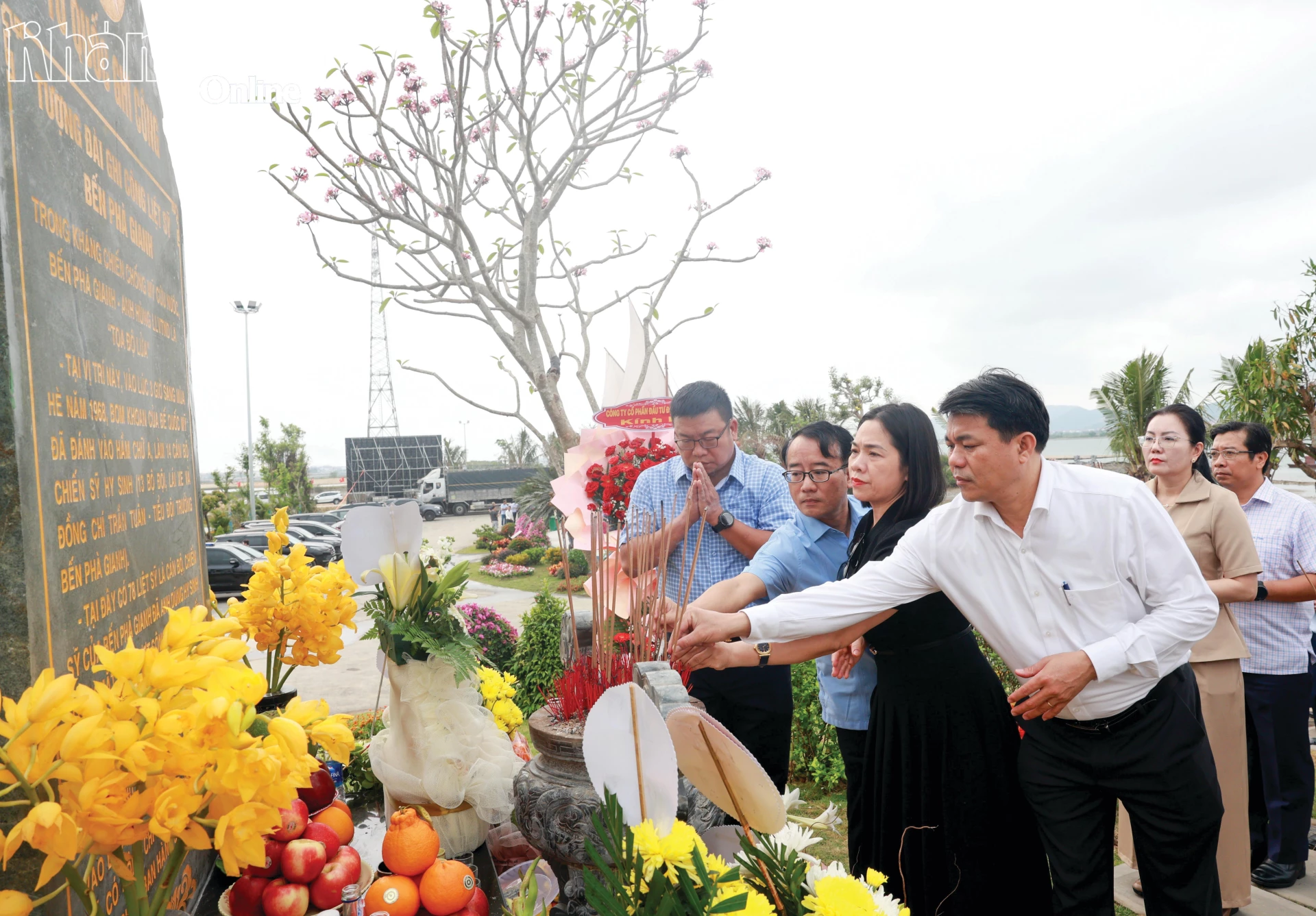 Đoàn công tác tỉnh Khánh Hòa dâng hương tại Bia ghi công ở Khu di tích quốc gia đặc biệt Bến phà Gianh.