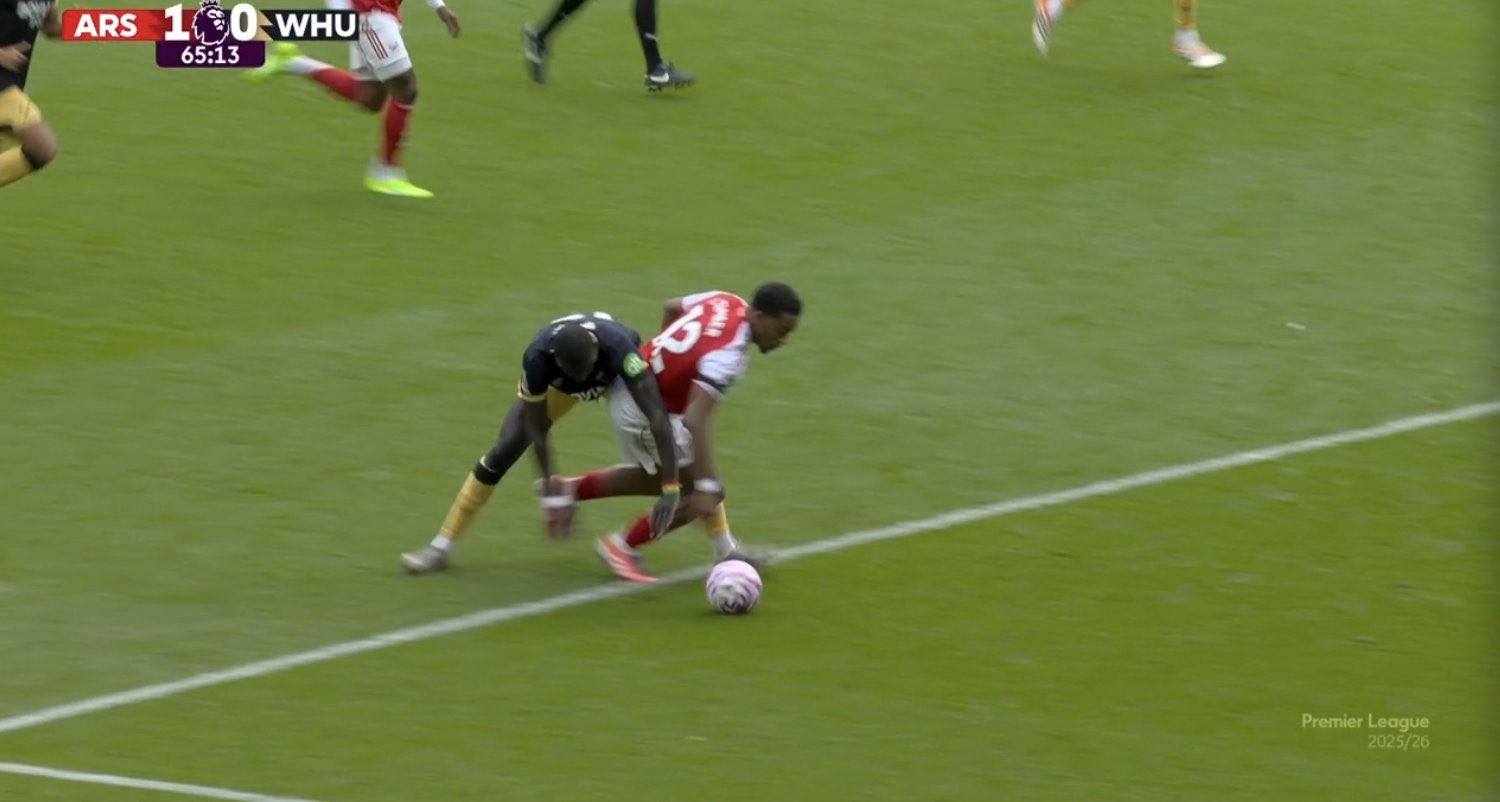 Arsenal ép sân mạnh mẽ sau tiếng còi khai cuộc. Saka đã đưa được bóng vào lưới West Ham nhưng anh lại rơi vào thế việt vị