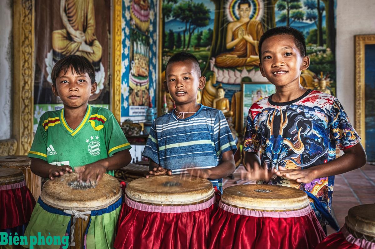 Ngay từ nhỏ, các cậu bé Khmer đã thích chơi Khaso-Samphô (trống nhỏ) của dàn nhạc ngũ âm. Ảnh: Thủy Lê