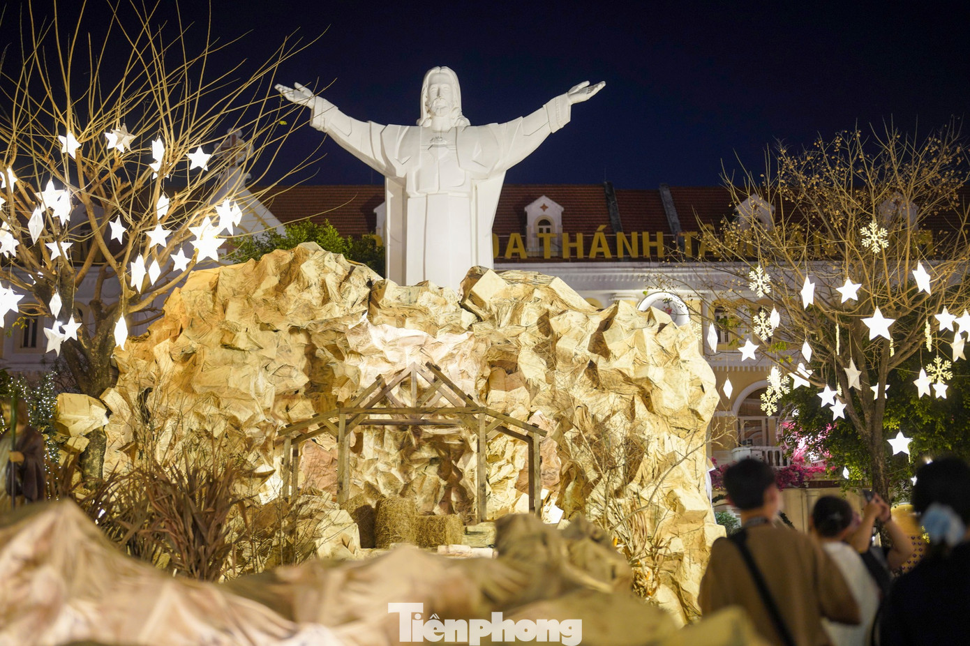 Khu hang đá được thiết kế kỳ công với tượng Chúa Giêsu ban phước lành đặt ở vị trí trung tâm. Vẻ uy nghiêm và lung linh của không gian này thu hút hàng trăm lượt khách đến chiêm ngưỡng mỗi tối.