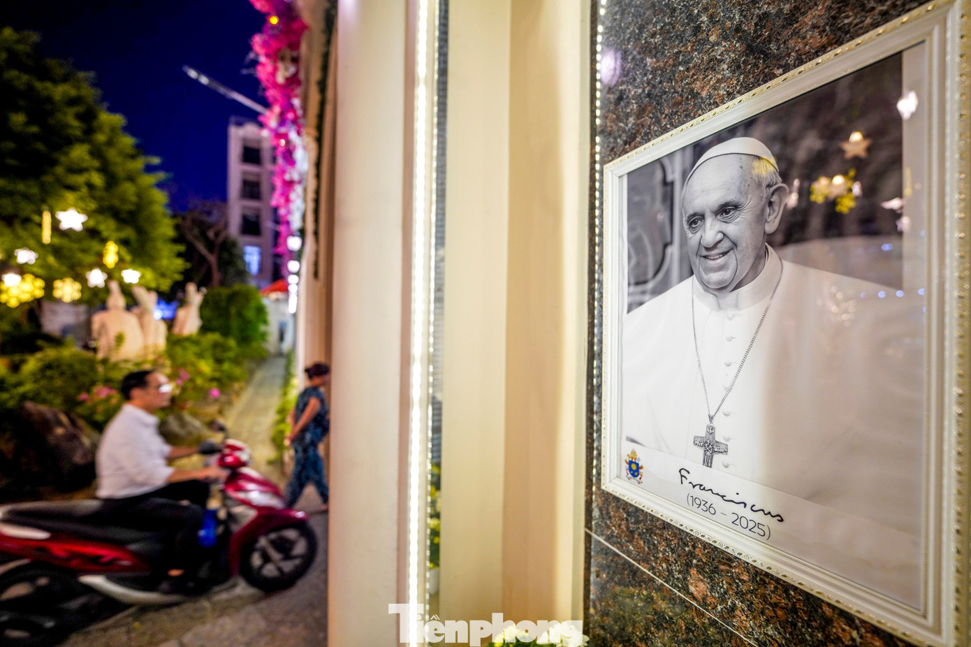 Khu nhà mục vụ và Phòng khám Đa khoa Thánh Tâm – nơi hiện thực hóa tinh thần phục vụ cộng đồng của nhà thờ. Tại đây, bức ảnh Đức Giáo hoàng Francis (1936–2025) được treo trang trọng, như một biểu tượng nhắc nhớ về lòng nhân ái và sự sẻ chia.