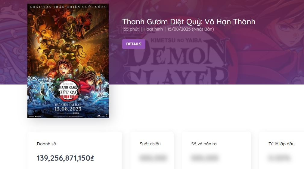 Doanh thu ấn tượng của Thanh Gươm Diệt Quỷ: Vô Hạn Thành tại Việt Nam. Nguồn: Box Office Vietnam