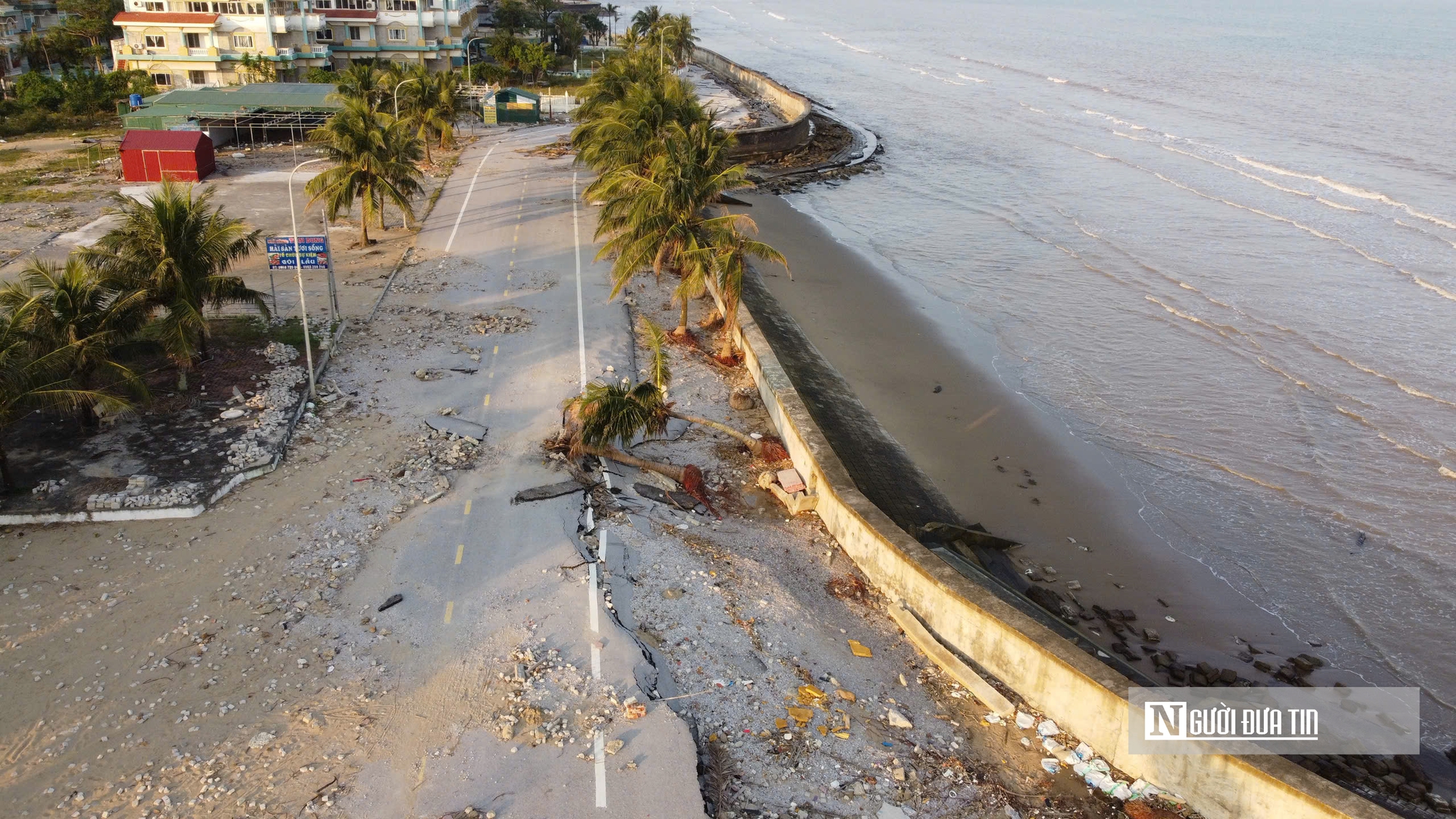 Đầu tháng 12, dọc bãi biển Hải Tiến (thuộc xã Hoằng Tiến và Hoằng Thanh), tỉnh Thanh Hóa, lớp lớp mảnh vỡ từ kè đá, bê tông và hàng loạt cây dừa đổ gãy vẫn nằm ngổn ngang. Nhiều đoạn đường ven biển bị khoét sâu cả mét, mặt đường nứt toác.
