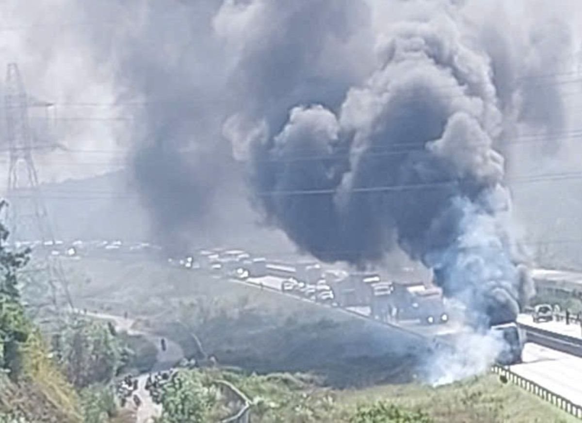 Ít phút sau, ngọn lửa bốc lên cao kèm theo cột khói cả chục mét. Những phương tiện lưu thông phía sau buộc phải dừng lại tránh rủi ro đáng tiếc. Dẫn tới việc ùn tắc trên cao tốc kéo dài hàng km.