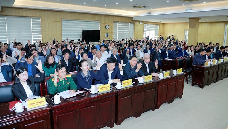 Các đại biểu biểu quyết thông qua cơ cấu, số lượng người ứng cử đại biểu Hội đồng nhân dân tỉnh khóa XIX và đại biểu Quốc hội khóa XVI tại Thanh Hóa.