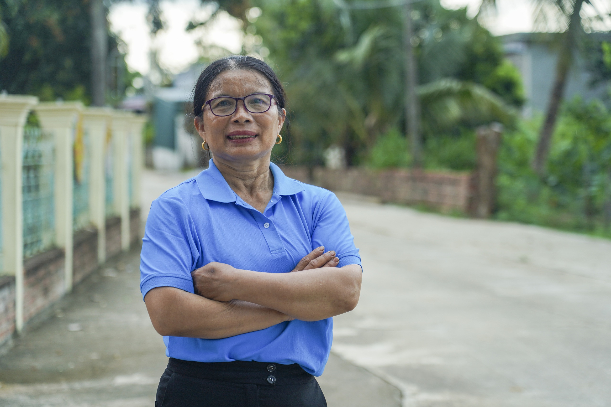 Bà Phạm Thị Kiên (57 tuổi) đã bền bỉ đi từng ngõ, gõ cửa từng nhà để khơi dậy sức mạnh cộng đồng.