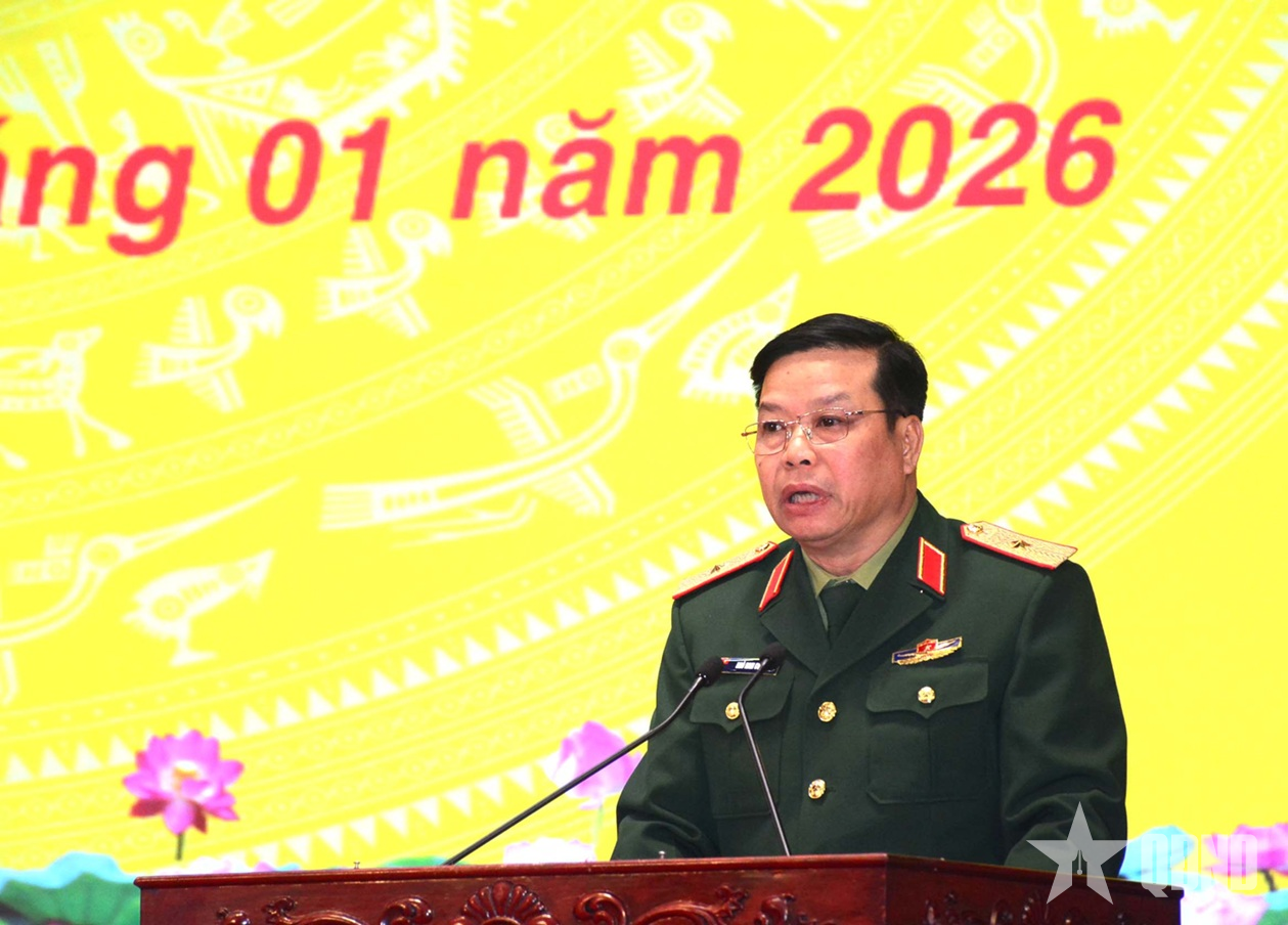 Thiếu tướng Ngô Nam Cường, Phó tư lệnh Quân khu 4 phát biểu tại hội nghị.