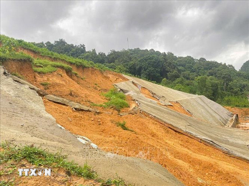Hiện đang vào cao điểm của mùa mưa, sạt lở có nguy cơ tiếp tục phát triển và diễn biến phức tạp, khó lường. (Ảnh: TTXVN phát)