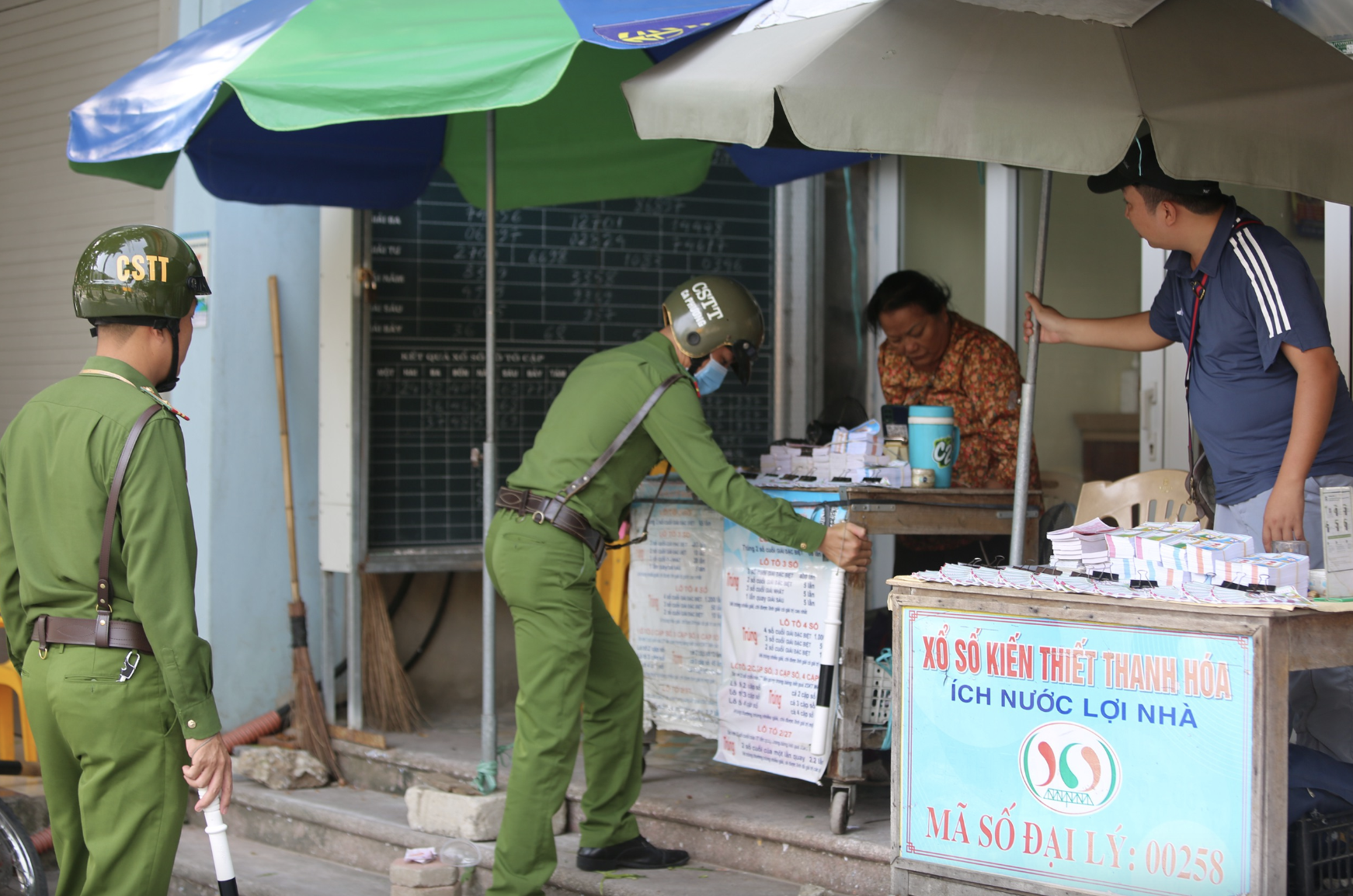 Công an xã Lưu Vệ tuần lưu kiểm tra tại khu vực chợ Lưu Vệ, không để người dân bày bán dưới lòng đường.