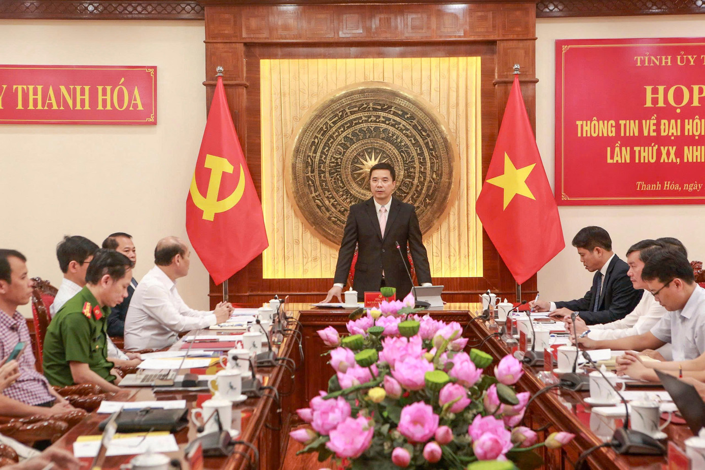 Thông tin tại họp báo, ông Nguyễn Văn Hùng, Trưởng Ban Tổ chức Tỉnh ủy Thanh Hóa cho biết, Đại hội Đại biểu Đảng bộ tỉnh Thanh Hóa lần thứ XX, nhiệm kỳ 2025 – 2030, diễn ra từ ngày 14 -16/10/2025; khai mạc Đại hội vào sáng 15/10. Địa điểm tại Trung tâm Hội nghị 25B (số 133 đường Quang Trung, phường Hạc Thành).