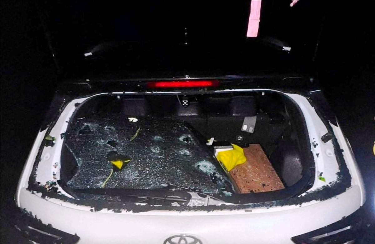 Một xe ô tô con bị vỡ kính do mưa đá.