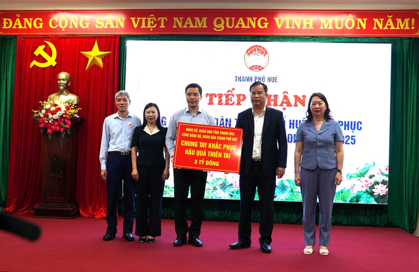 Lãnh đạo thành phố Huế tiếp nhận 3 tỷ đồng từ lãnh đạo tỉnh Thanh Hóa