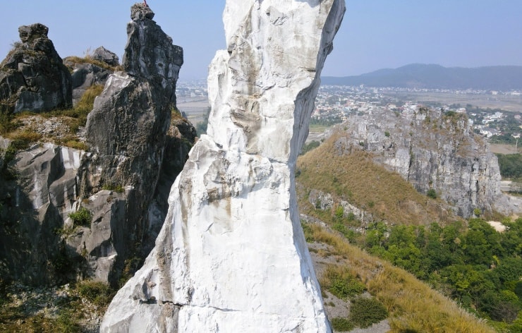 Bên cạnh việc gia cố lõi, bề mặt đá cũng được xử lý kỹ lưỡng. Những mảng nứt vỡ cũ trên ngọn Thạch Trụ đã được khớp nối và trám vá tỉ mỉ, giúp công trình lấy lại vẻ nguyên khối nhưng đồng thời cũng làm mất đi lớp rêu phong cổ kính vốn có.