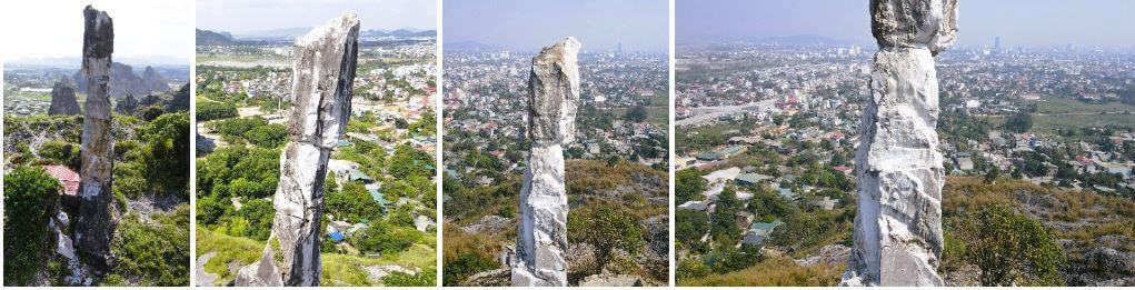Các vết nứt vỡ trước đây (2 ảnh bên trái) trên ngọn Thạch Trụ và sau khi đã được gia cố