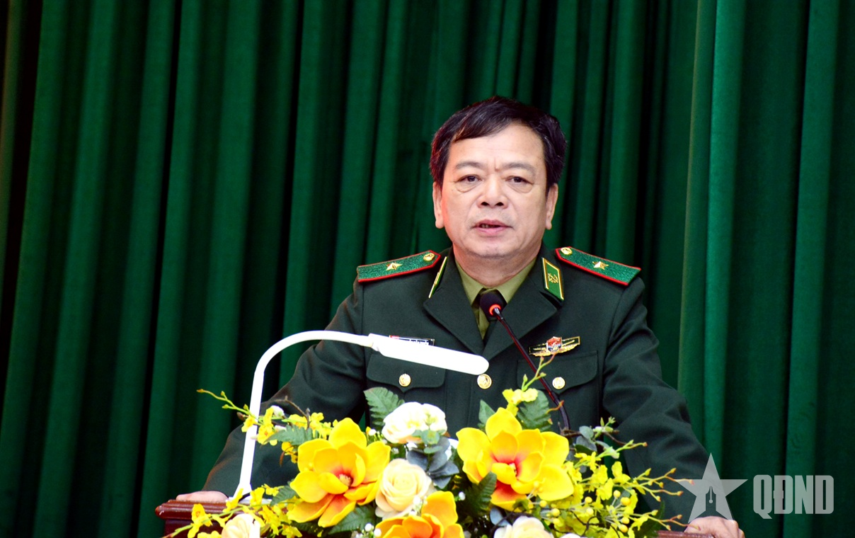 Thiếu tướng Nguyễn Văn Thiện, Phó tư lệnh BĐBP phát biểu chỉ đạo tại hội nghị.